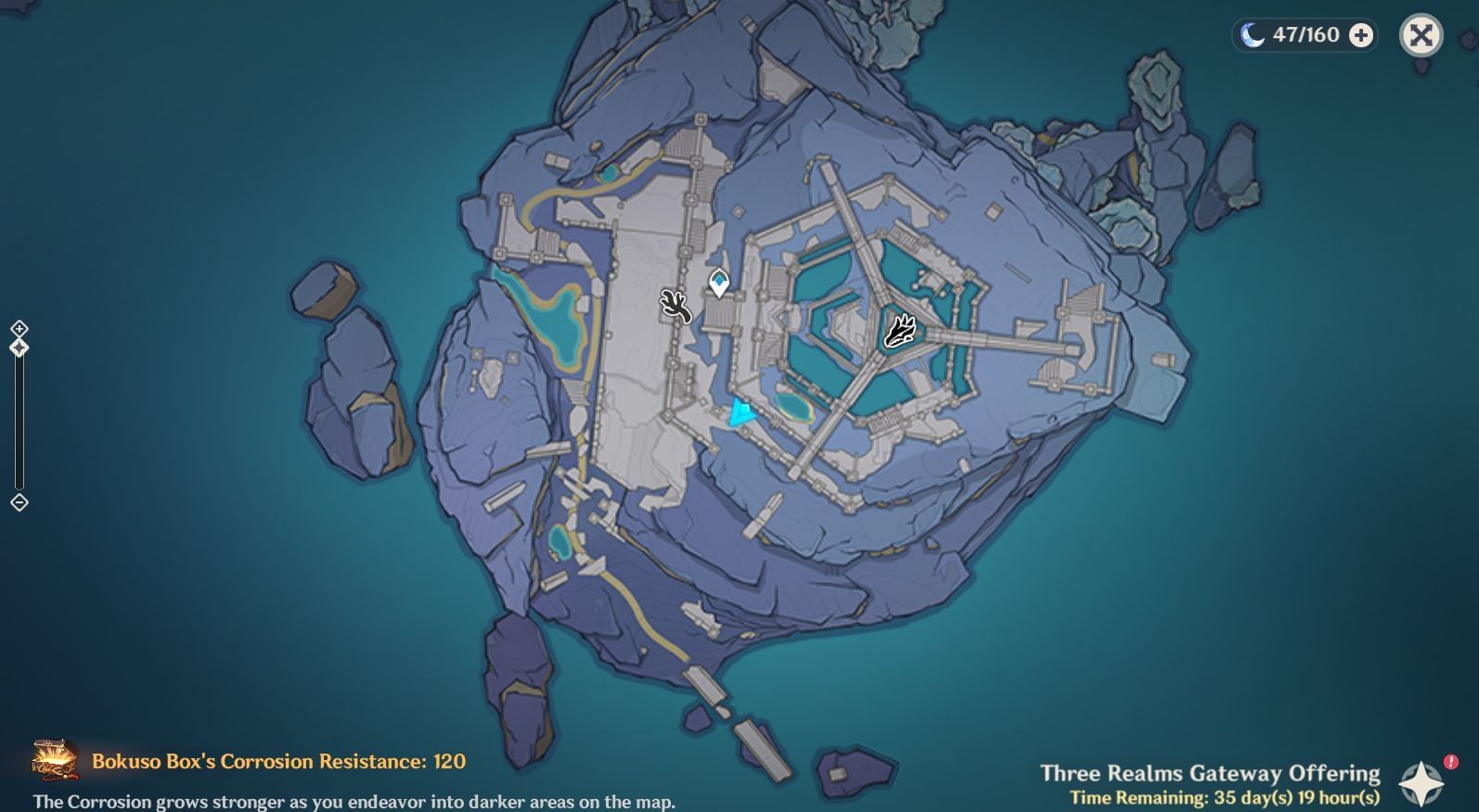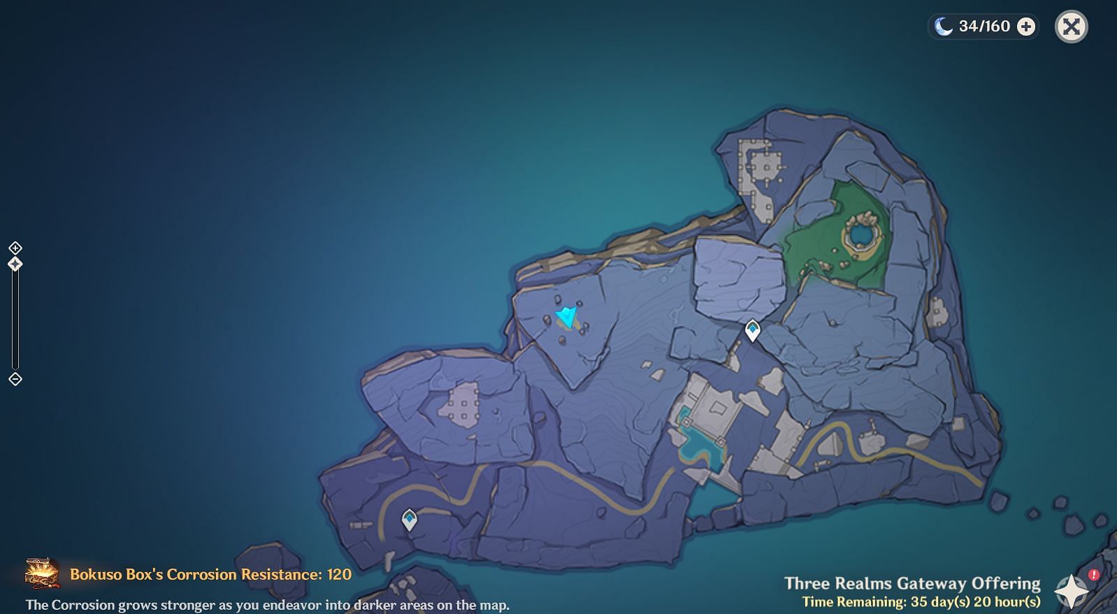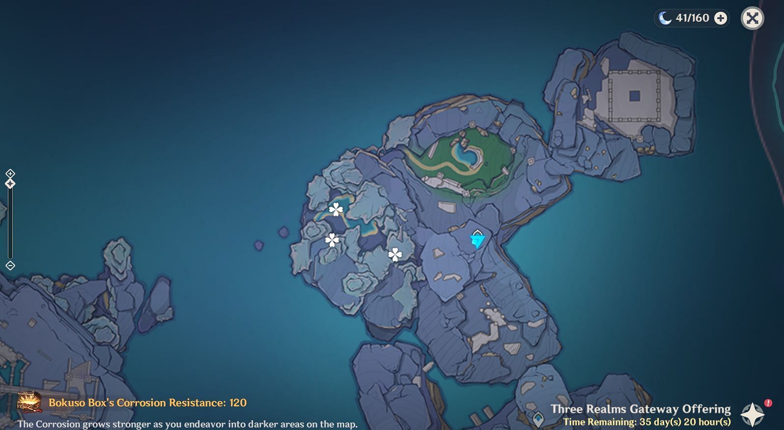 The third Bokuso Art can be located northwest of Evernight Temple in Genshin Impact's Three Realms Gateway Offering. Similar to the previous Core, you must return three Seelies to their garden.
