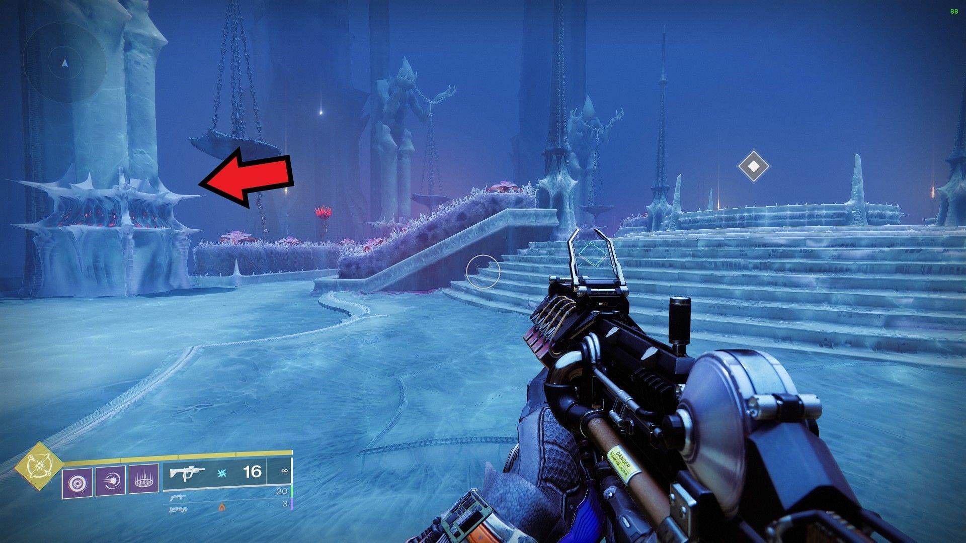 Once you're near the main altar, head left to shoot the Darkness Rift located on top of the damp area.