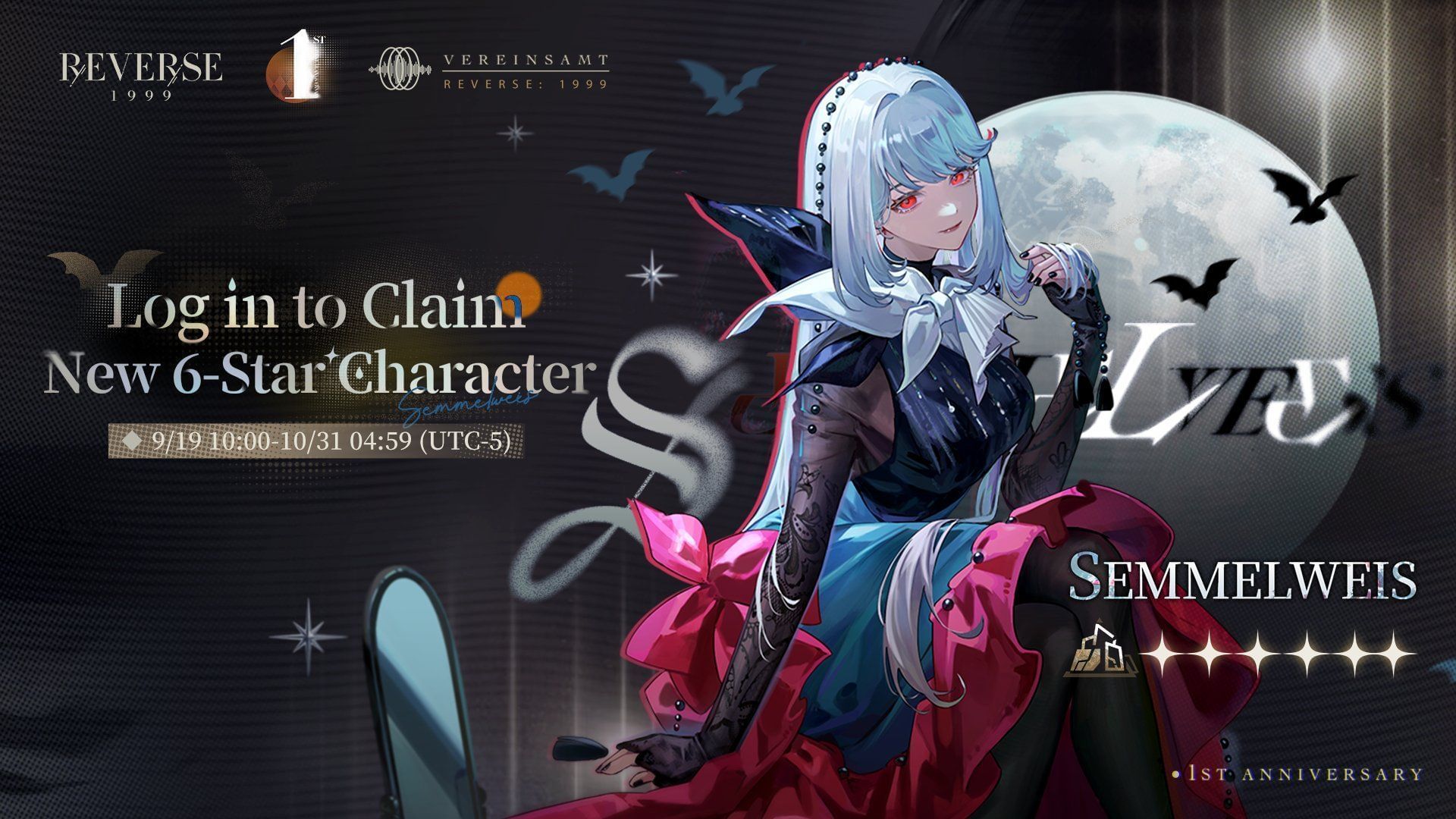 Players can get one new 6-star character, Semmelweis, and a 5-star, Matilda, as free rewards in the Reverse 1999 version 1.9 first anniversary update. Players must log in between September 19 to October 31, 2024, at 04:59 UTC-5 to obtain them. Clear Chapter 1, Stage 1 of the main story to get the free characters.