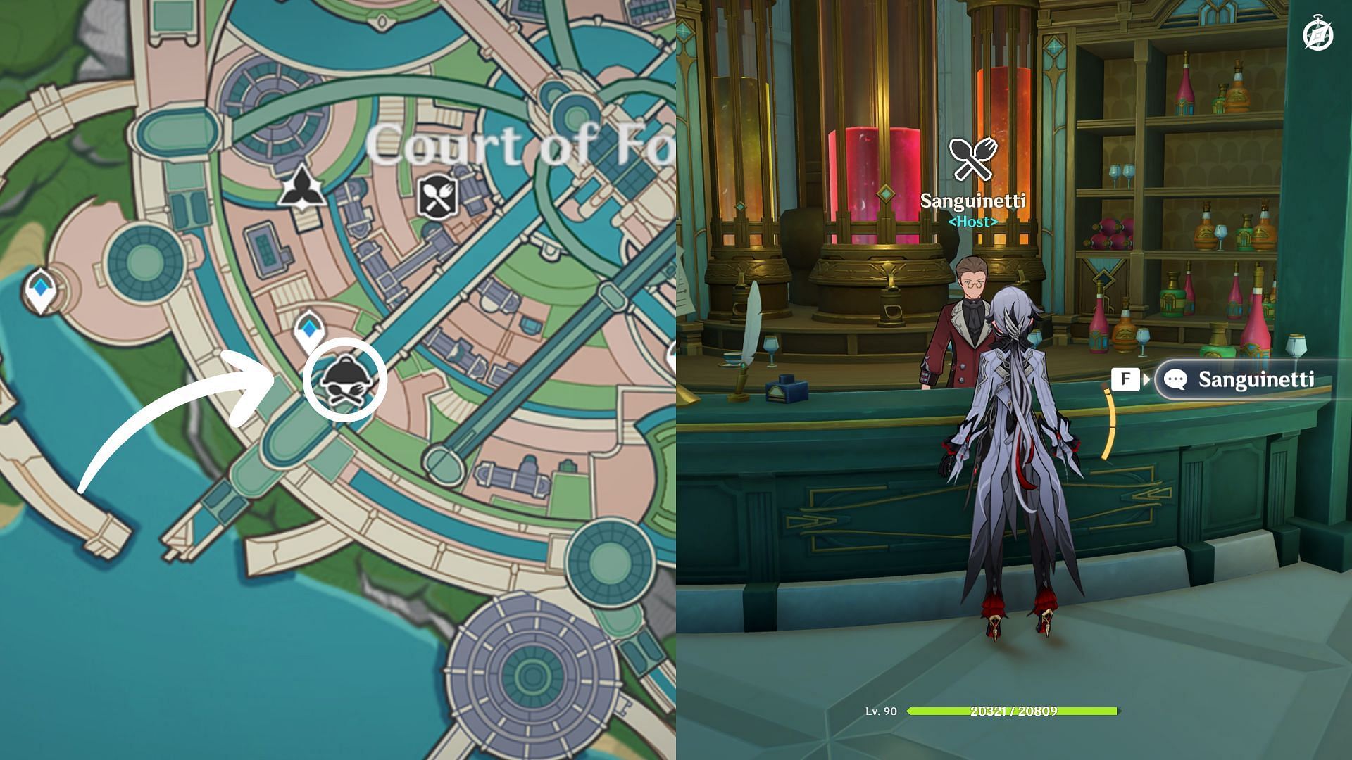 Genshin Impact 4.7 update adds a new recipe at Hotel Debord. Enter the hotel and interact with NPC Sanguinette to buy the new recipe called Bulle Sauce Duck Breast in exchange for 2500 Mora.
