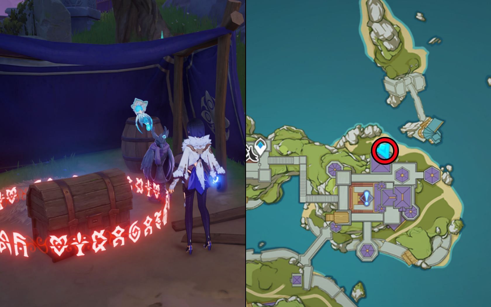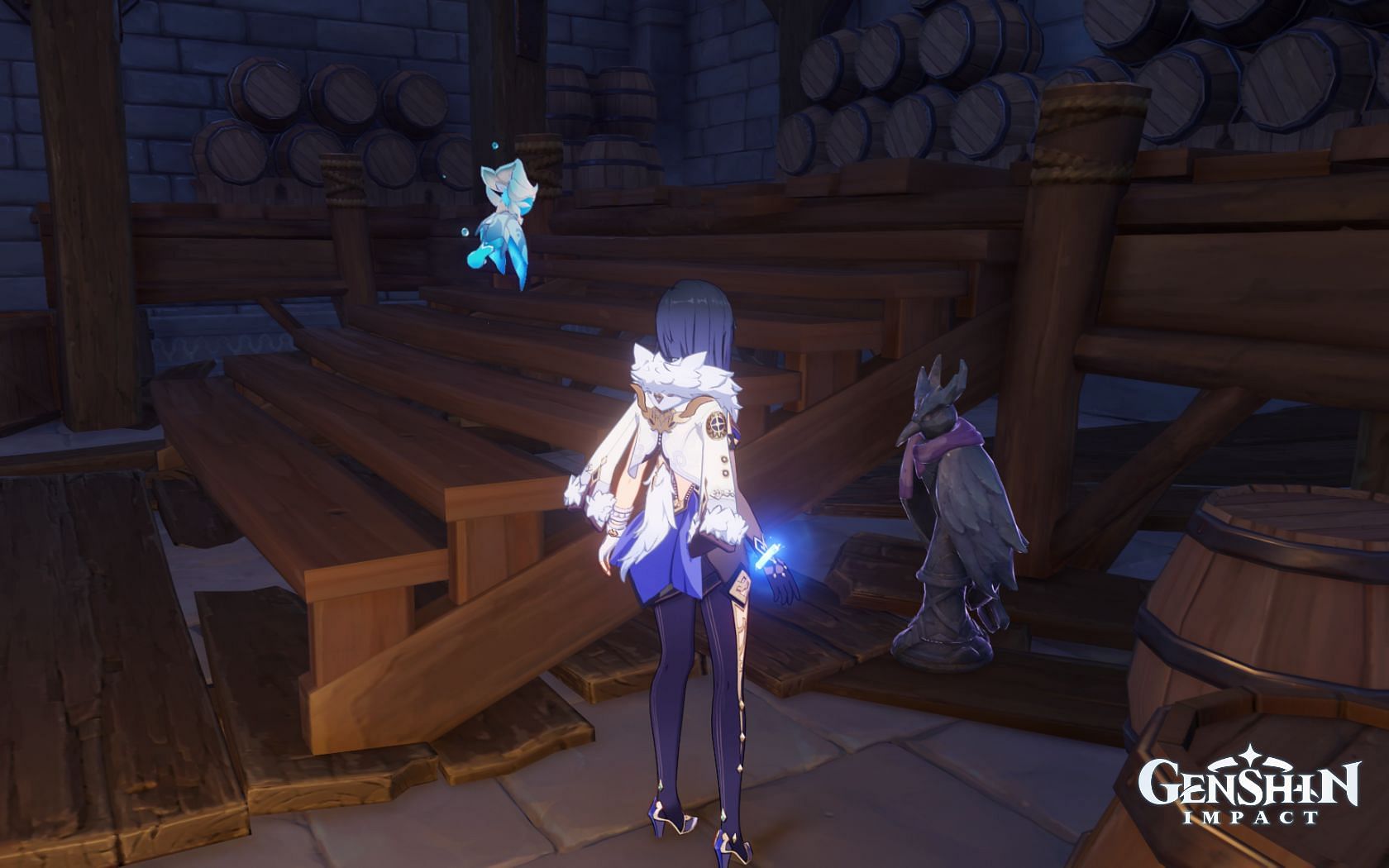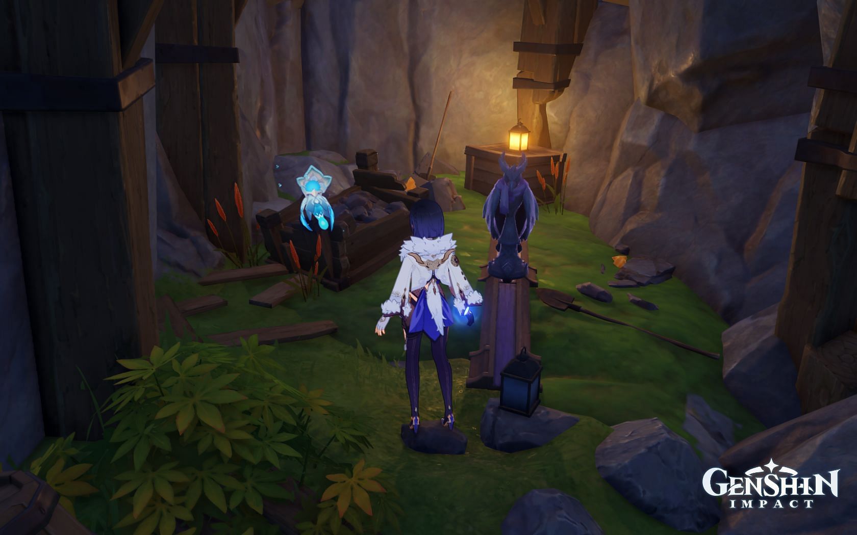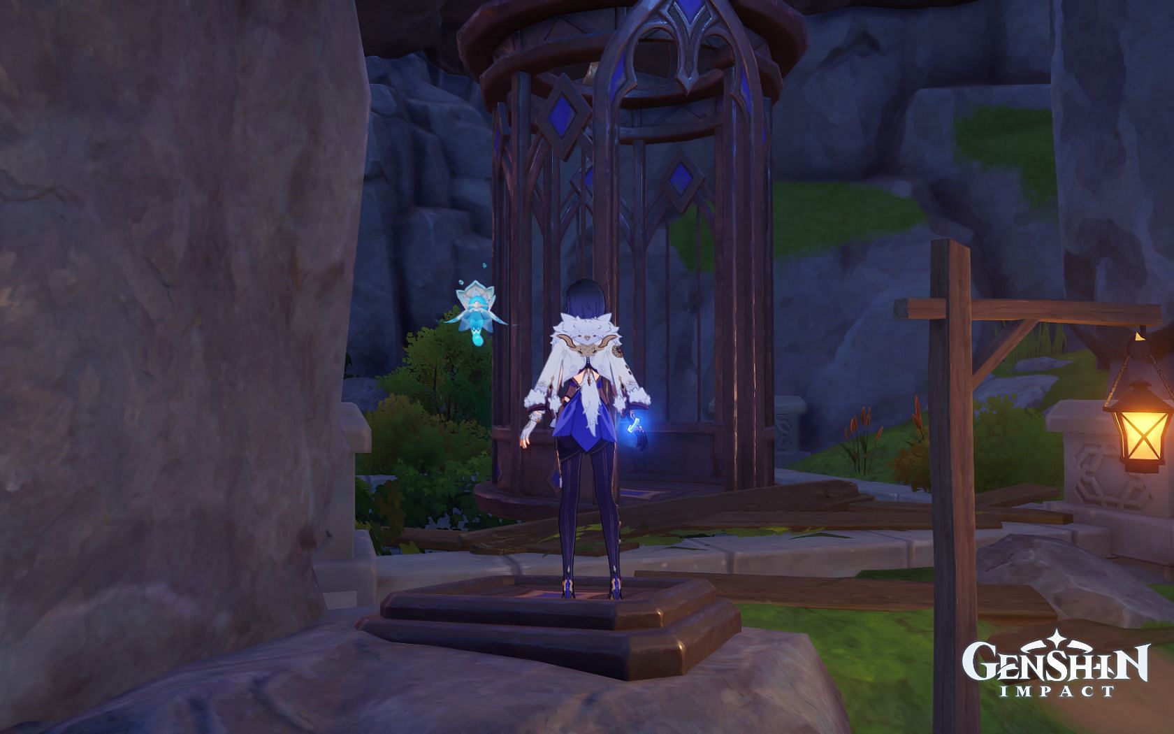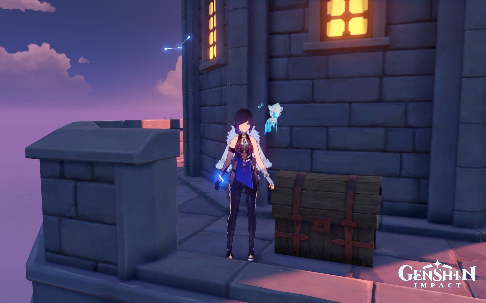There will be a lamp that Genshin Impact players can interact with here. Turn it off three times to annoy the Night Raven into giving you the treasure.