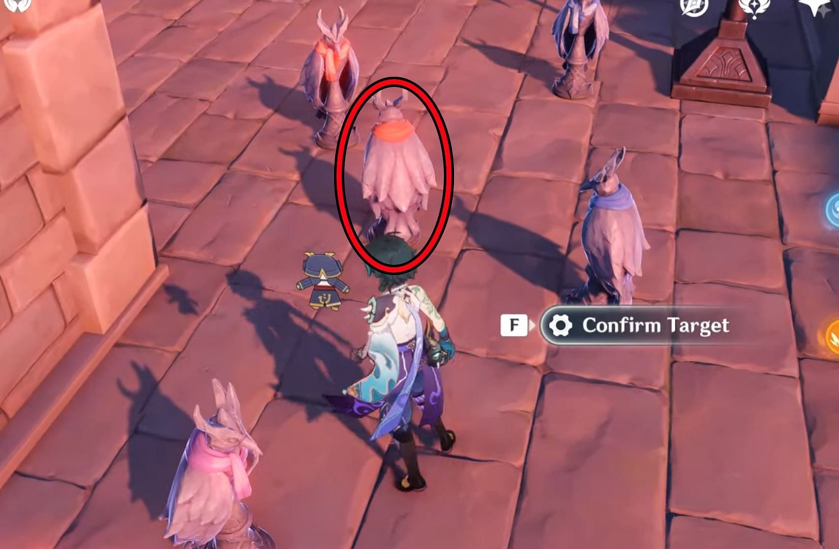 Genshin Impact players should select the one with the red scarf near the treasure chest.