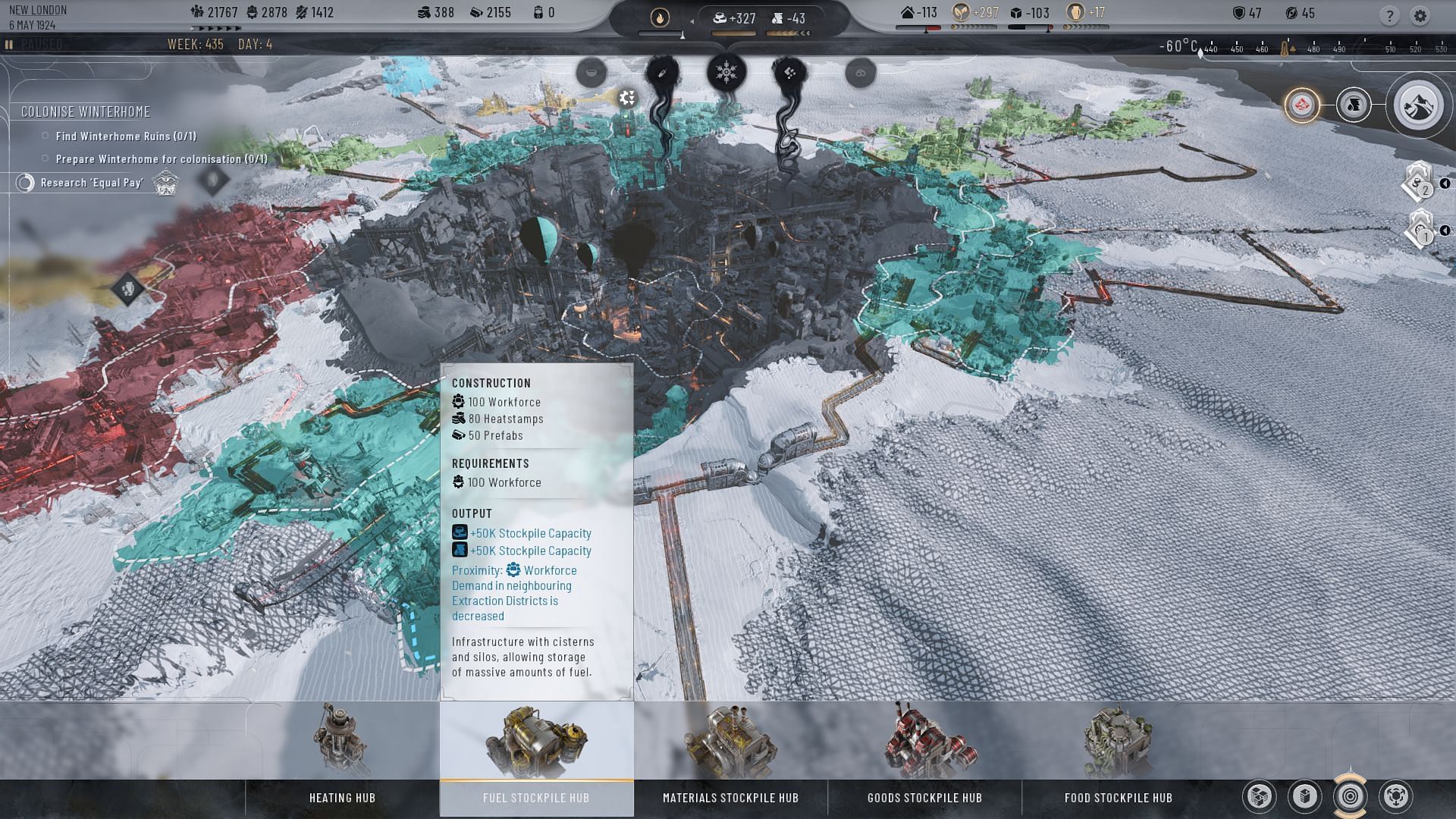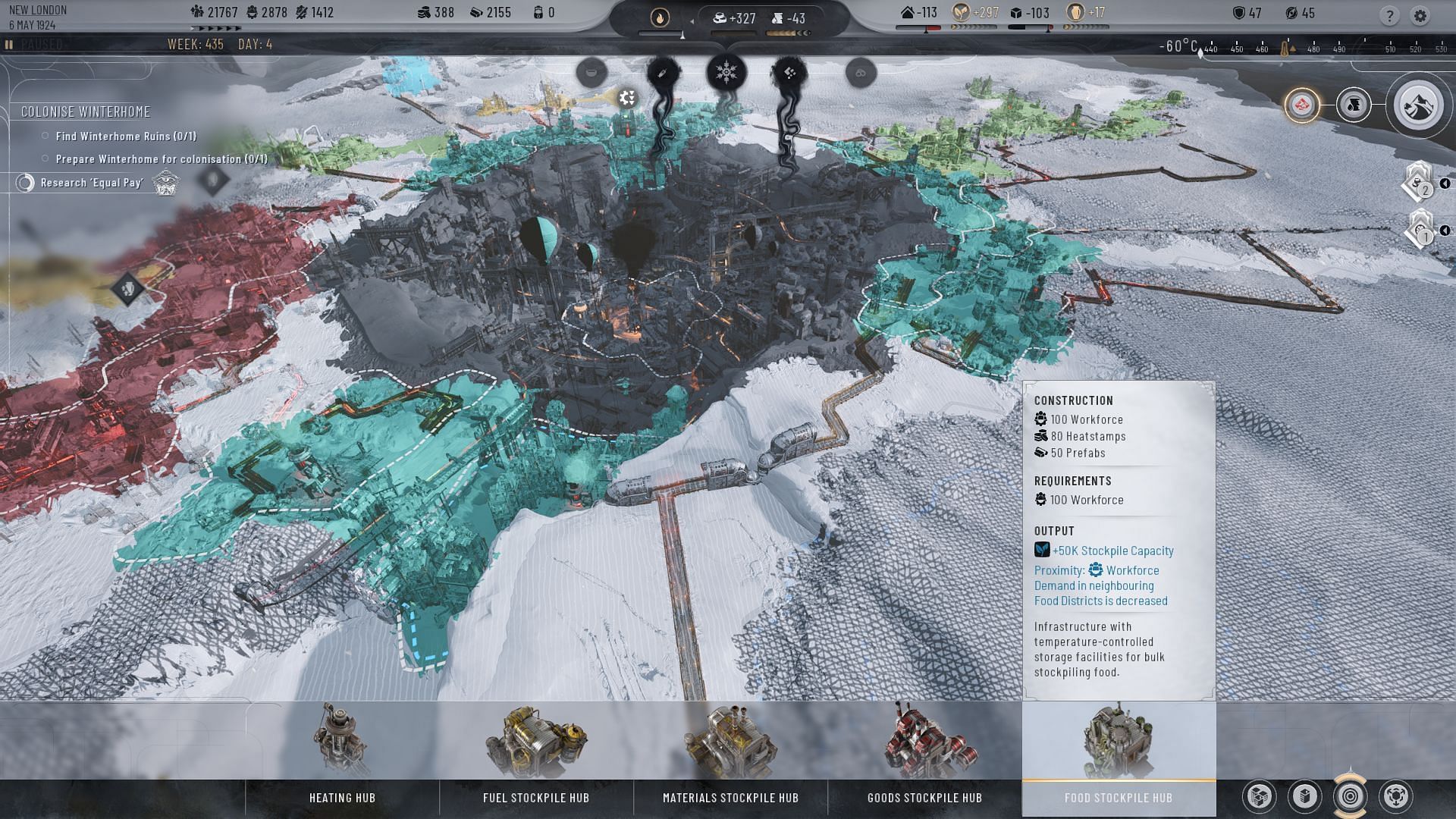 In Frostpunk 2, the survival of your population hinges on access to food. As one of the most vital resources, food shortages can lead to starvation, mass unrest, and a sharp decrease in productivity. A Food Stockpile Hub allows you to store large quantities of food during periods of abundance, ensuring that your city has enough reserves to weather crises like food production disruptions, or extreme cold that affects hunting and farming.