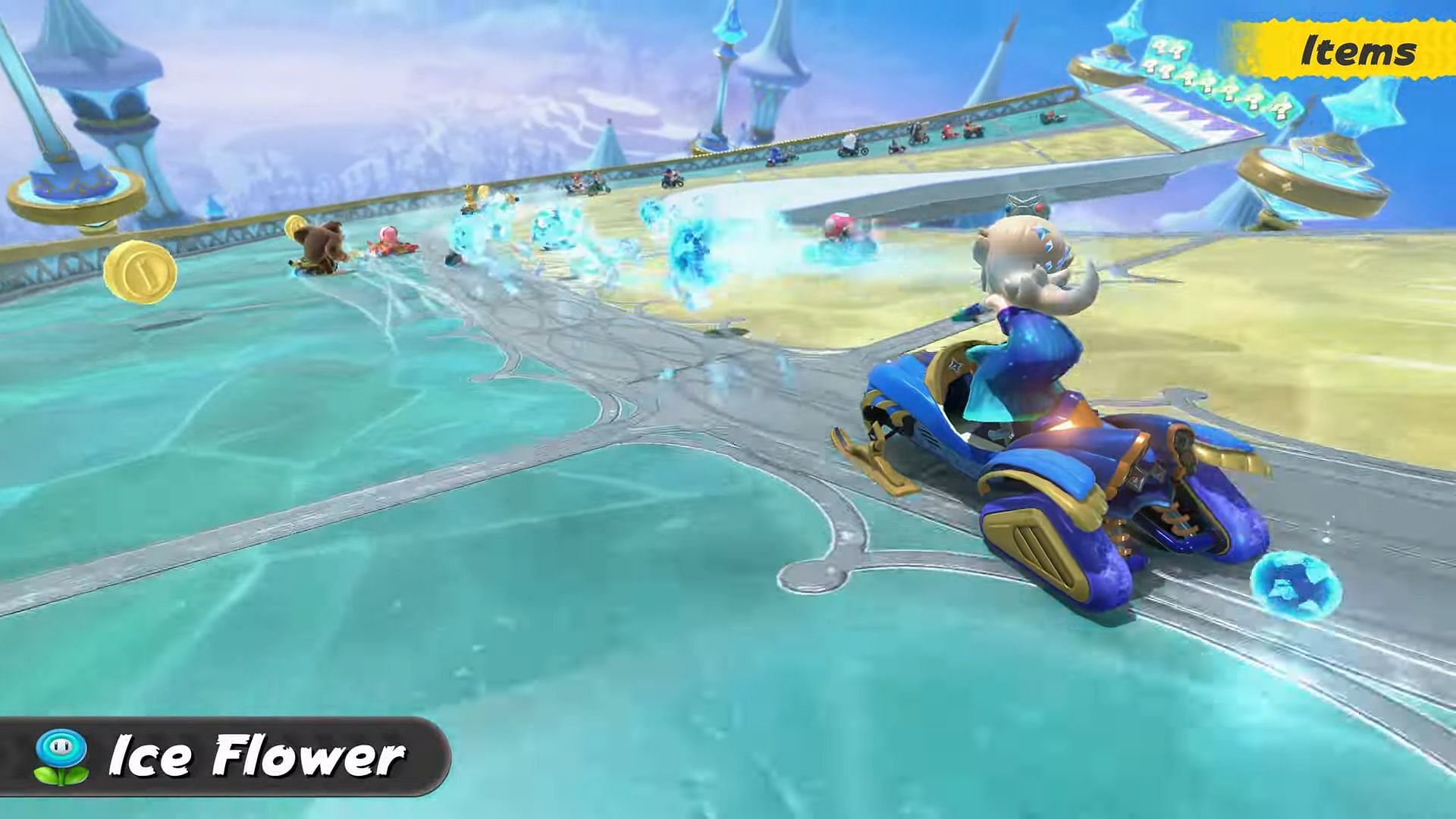 Ice Flower is the next big item coming to Mario Kart World. This power-up will freeze other racers and send them spinning. However, it is an ability that comes out as a few balls of ice that, when hit, will freeze the opponents. Aim at the other racers when you activate it, as missing the shots will waste the power-up.