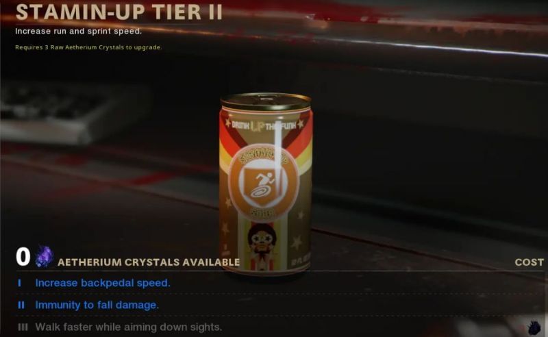 The Stamin-Up perk, much like the name suggests, provides players with increased running and sprinting speeds. At tier 1, it gives increased backpedal speed, while tier 2 ensures immunity to fall damage.