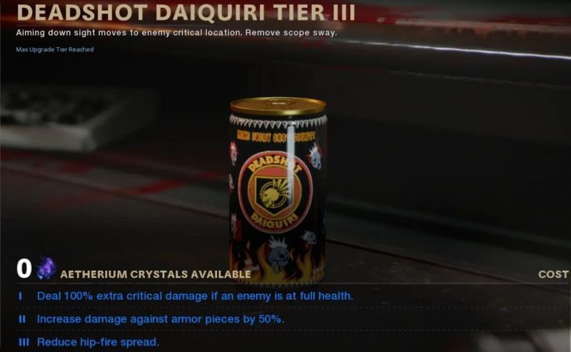 The second upgrade increases damage by 50% against armor pieces. For its final upgrade, the Deadshot Daquiri reduces bullet spread when players use the hip-fire option.