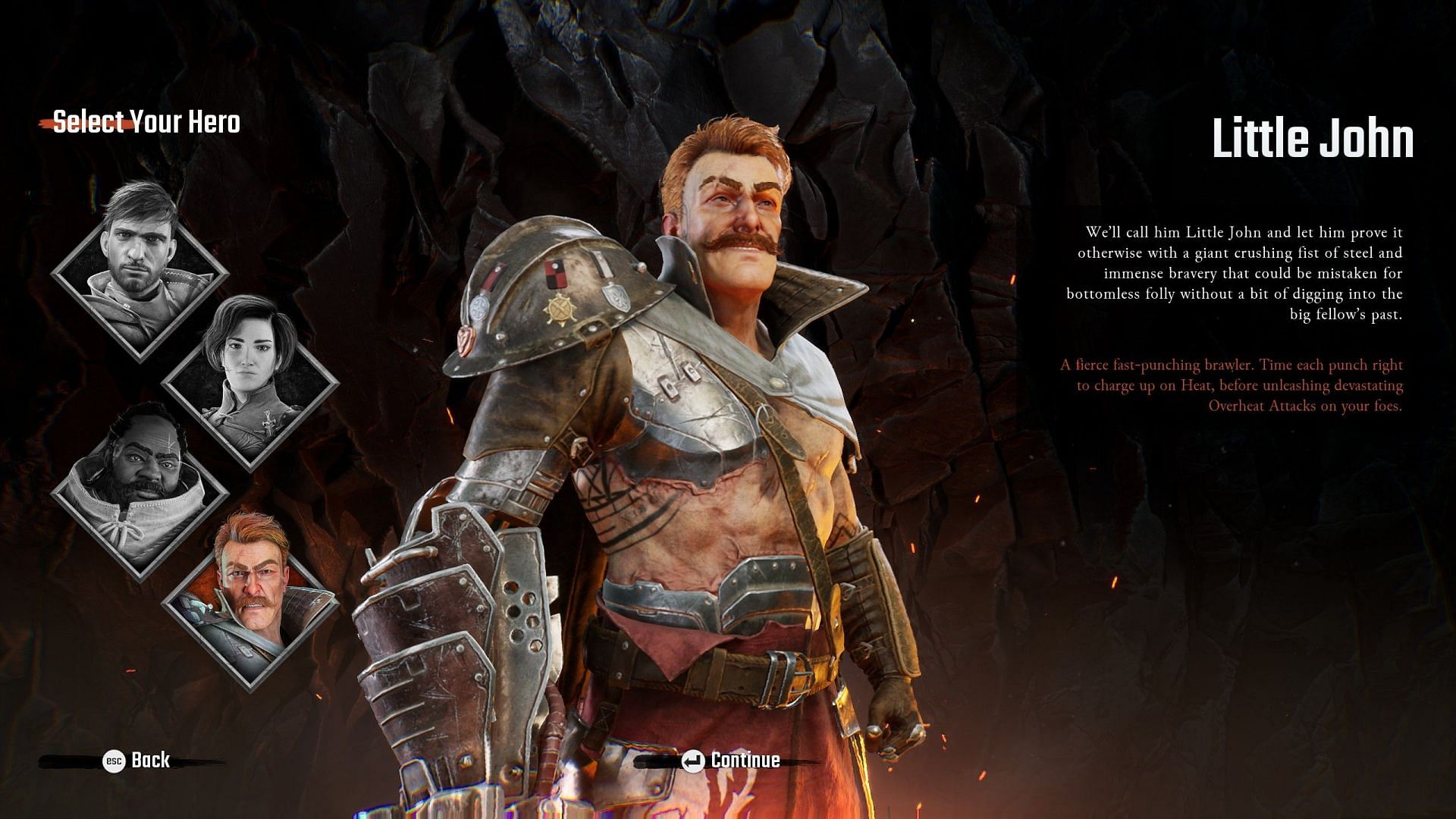 Little John is a brawny brawler who lets his fists do the talking. He works slightly differently from other heroes in the sense that he relies on Heat Points to enhance his attacks. These are acquired by timing light attack combos with the Heat gauge. This allows the use of Overheat heavy attacks when one or more Heat Points are active, unleashing a large area-of-effect burst of fire.