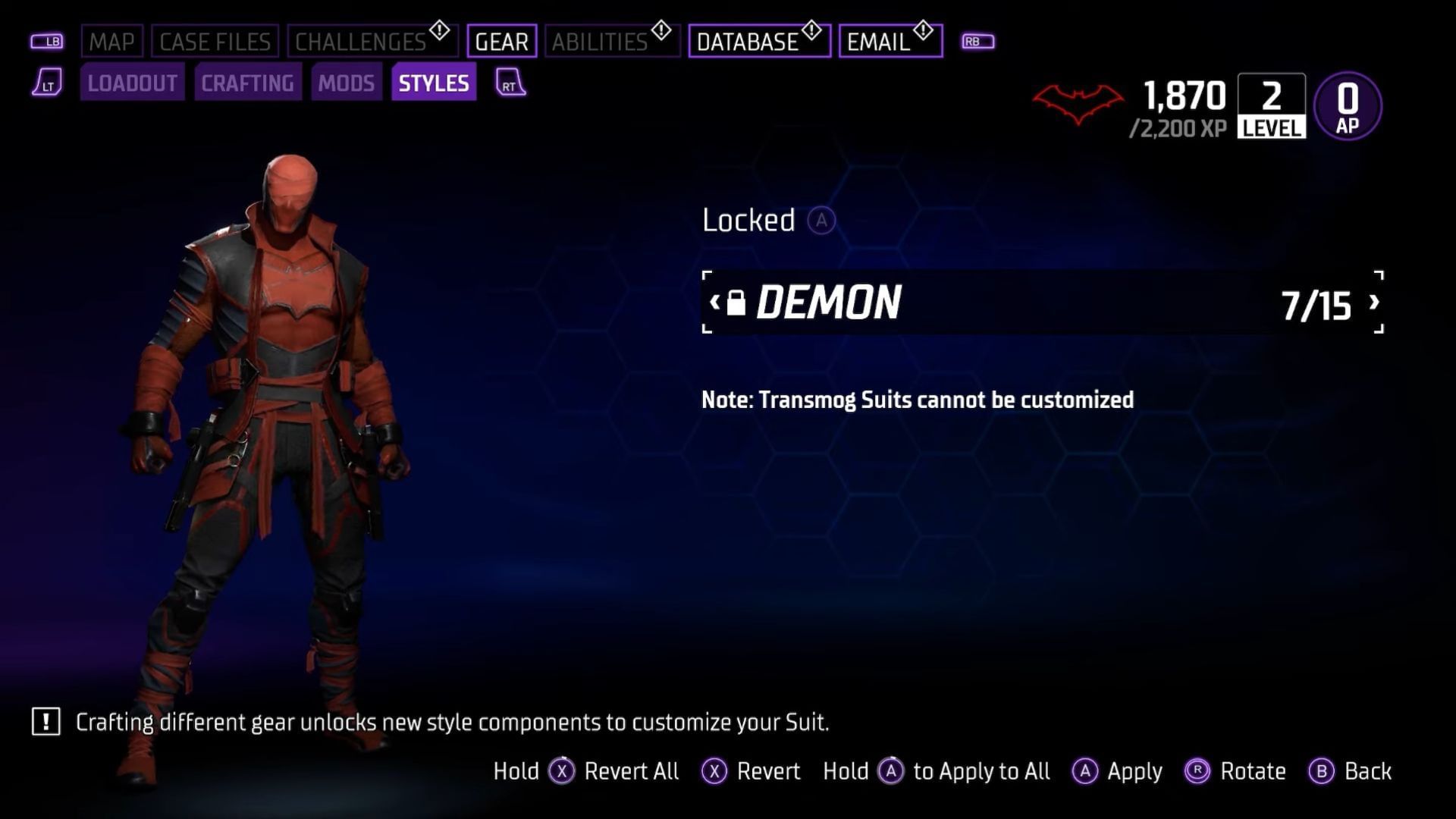 In Gotham Knights, you’ll have access to a number of different suits for each character, either as craftable gear or suit styles as a Transmog. To keep things simple, I’ll only be looking at all 14 different Transmog suit styles available for Red Hood and not every craftable suit, as the latter is basically a random drop.