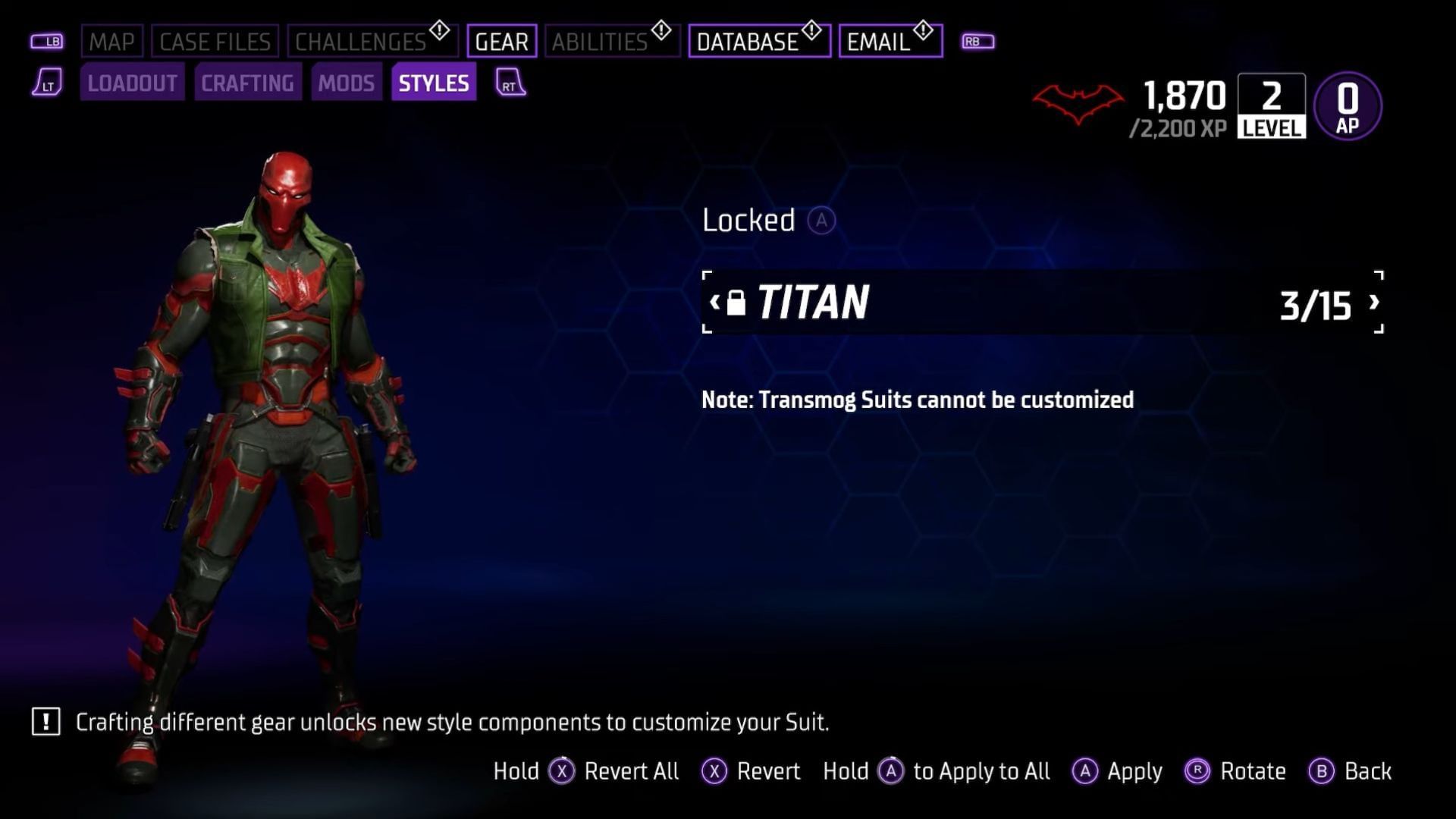 Ranking all the suit styles you can use as Red Hood in Gotham Knights