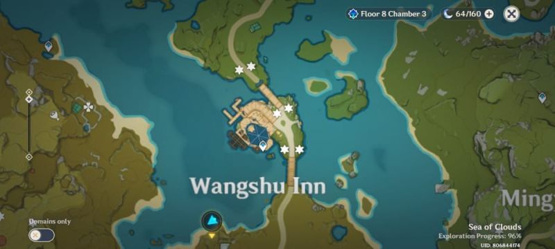 There are six silk flower buses in Wangshu Inn at the six star-marked locations on the above map. Each bush will grant players two silk flowers, resulting in 12 silk flowers from this location. These locations will allow players to capture the pictures for the 'Five Flushes of Fortune' event.
