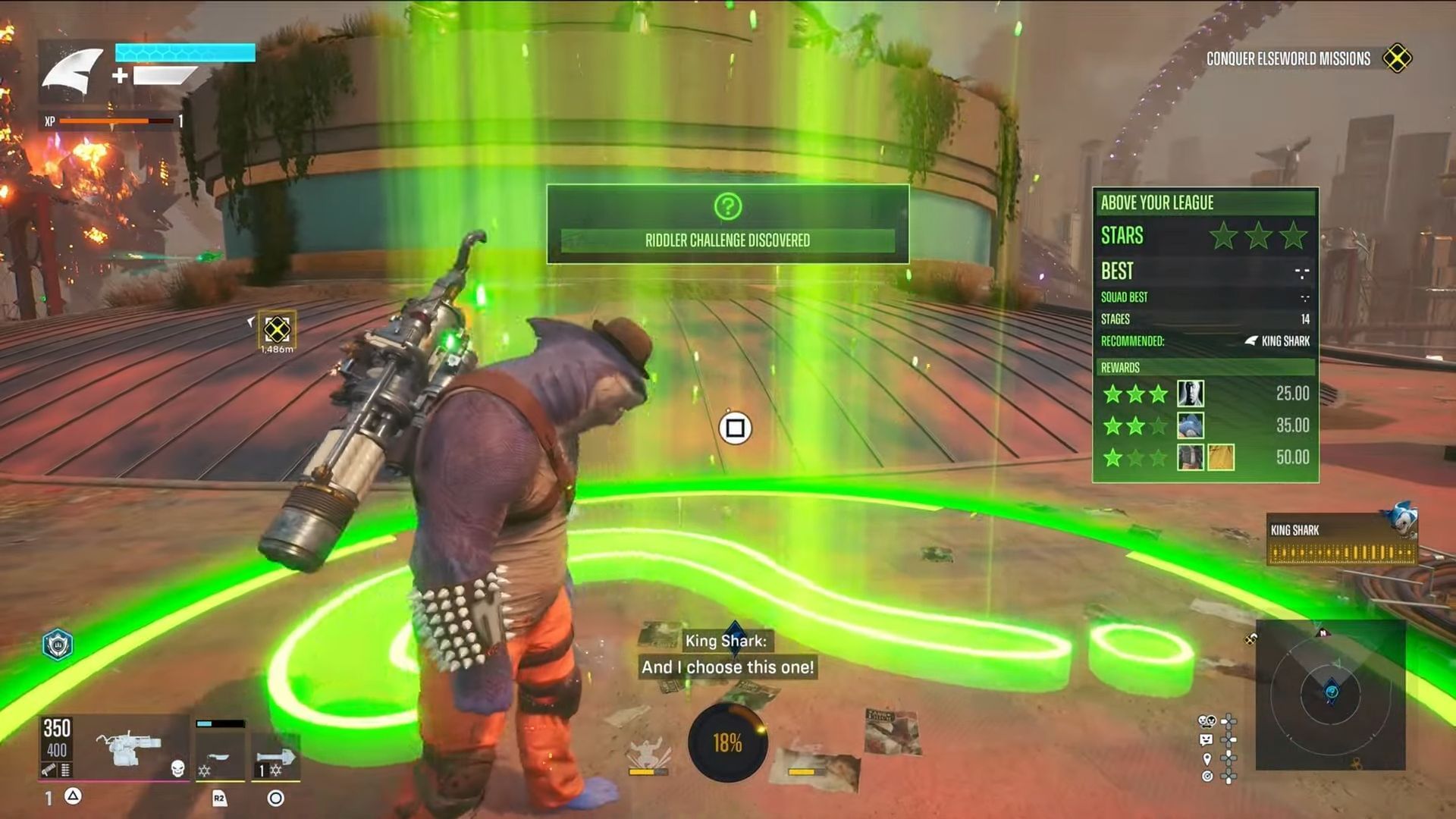 This Riddler AR challenge can be unlocked after completing the “This Resonates” mission from chapter three of the story mode. The recommended character for this is King Shark.