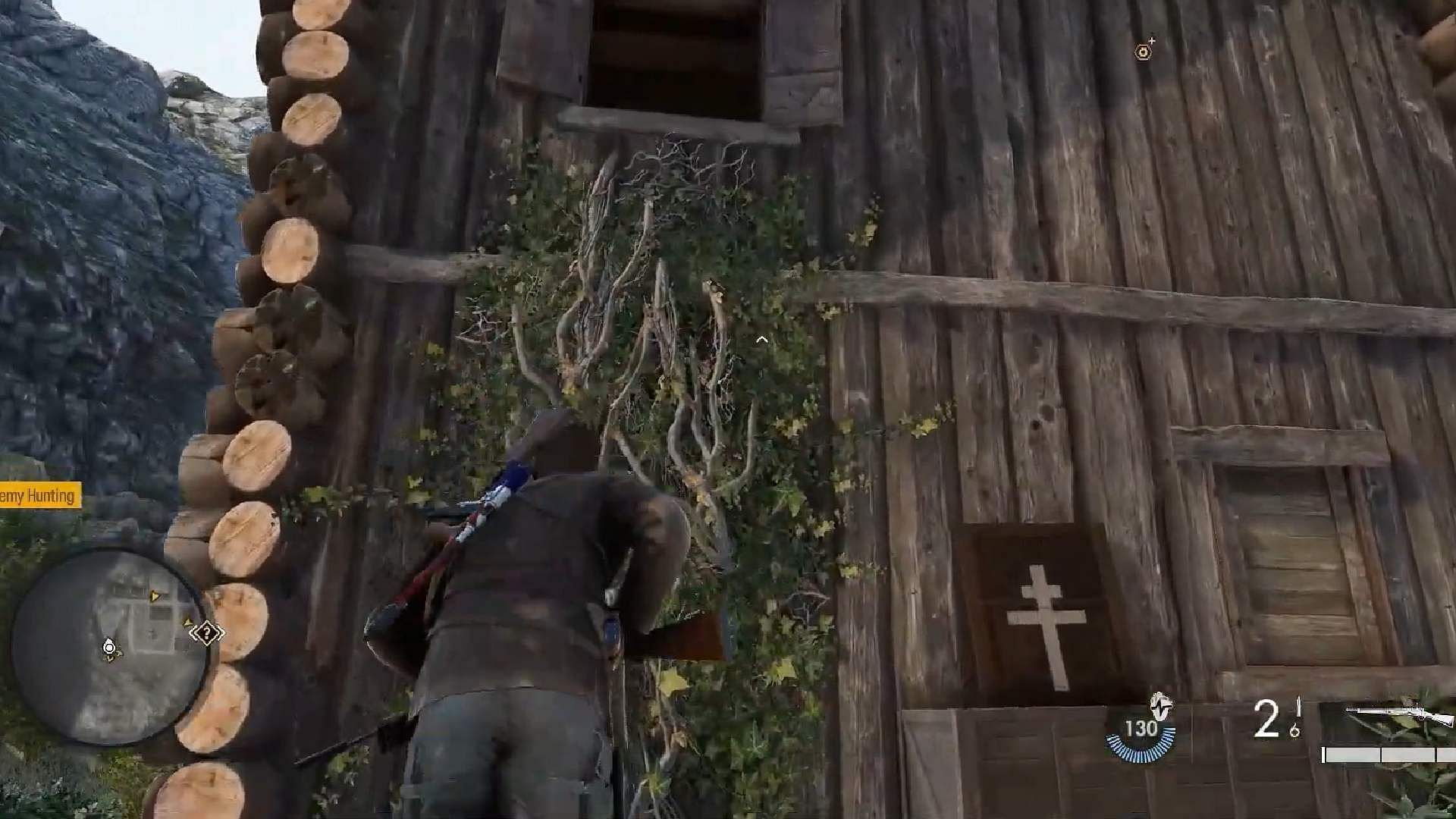 Travel to the southwest of the map. You will find a building covered in vines. Use the vines to climb to the second floor, where you will encounter the rifle modification area.