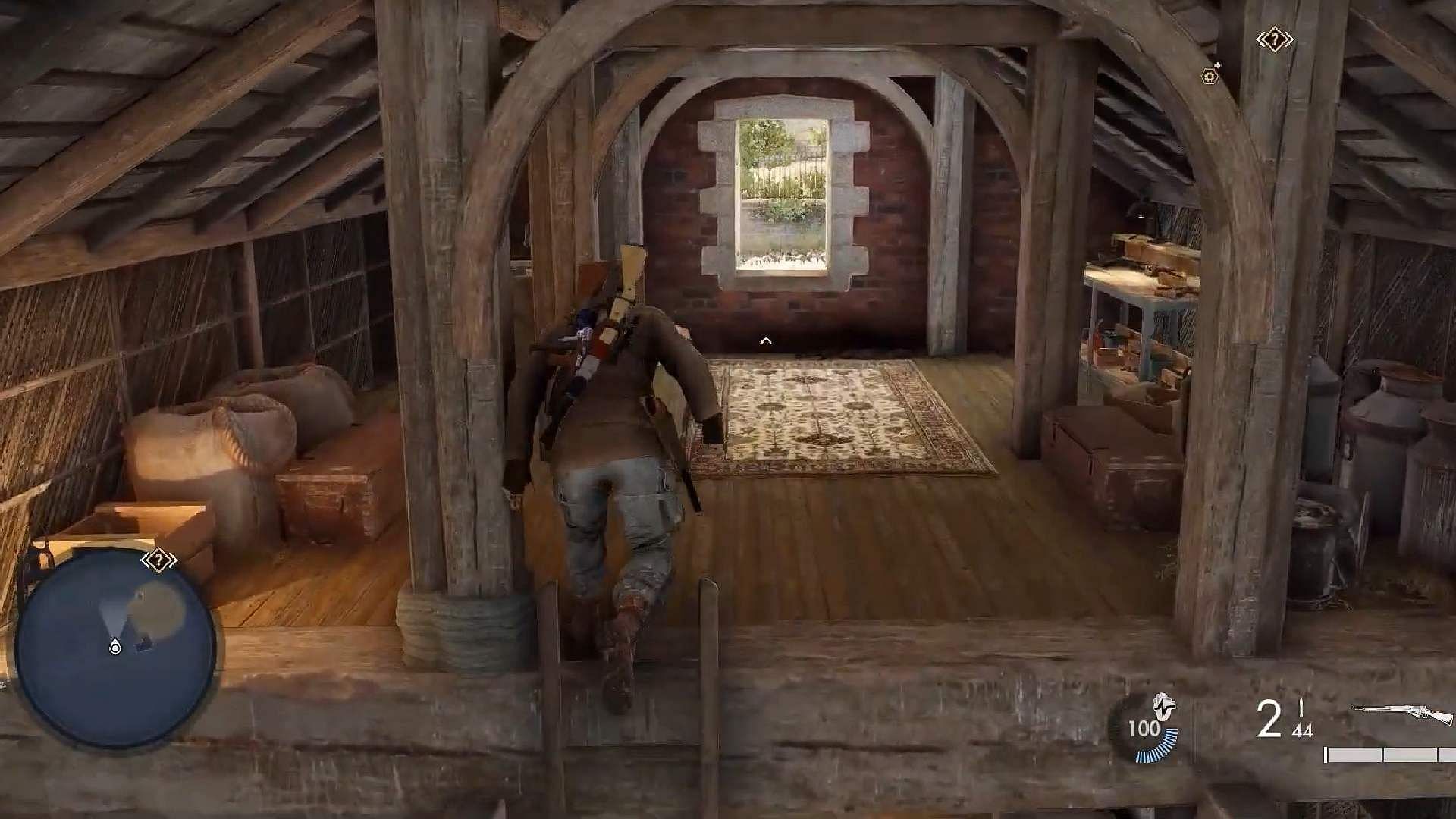Head toward the southeastern side of the map, where you will also find Anti-Air guns to destroy. In that region, there is a house that you can access by climbing the vines. Once you are at the upper part, break through the blocked wooden planks to reach a ladder, leading to the ground floor, where the desk is located.