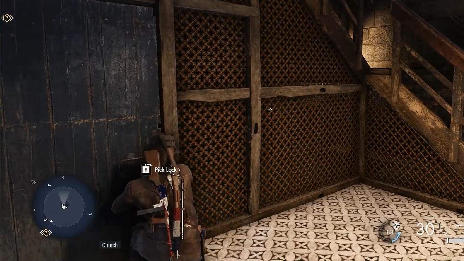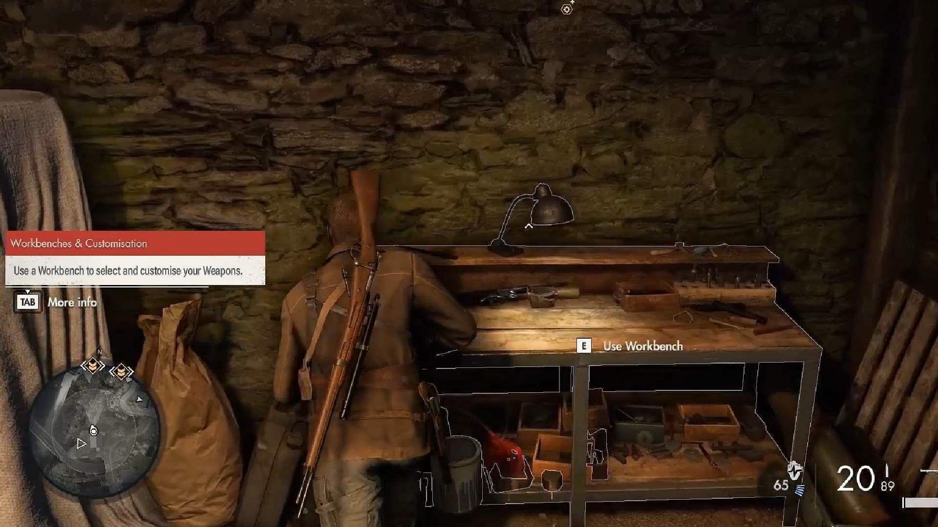From the starting point, as you begin exploring, you will find a church that is close to an optional objective. Follow the mini-map, and head inside the church. There, you will see a staircase and a small room next to it. The rifle workbench is located in the basement.