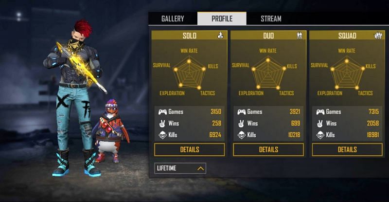 The internet star has played 201 duo matches and has 31 Booyahs, coming down to a win ratio of 15.42%. In the process, he has 636 frags at a K/D ratio of 3.74.