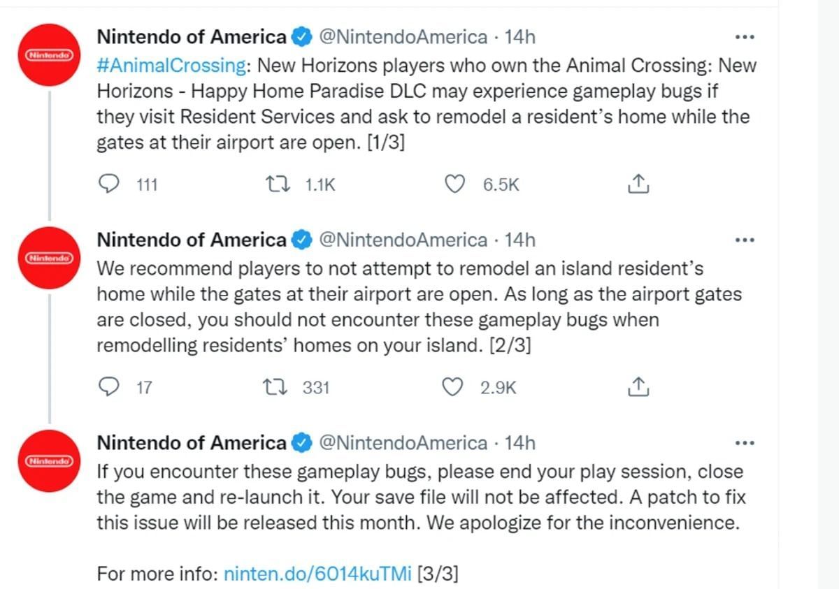 Nintendo has acknowledged the Animal Crossing bug and is reportedly working on a fix