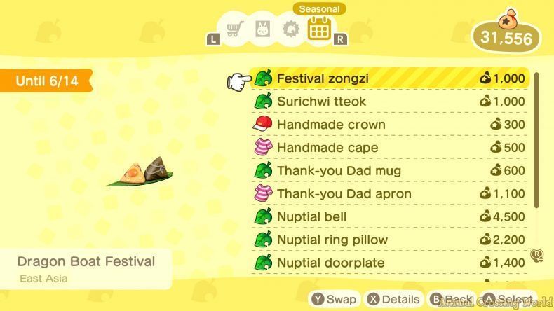 Animal Crossing doesn't have a lot of events that are centred around food items. But the Dragon Boat festival adds the limited time zongzi food item that corresponds with the aforementioned festival.