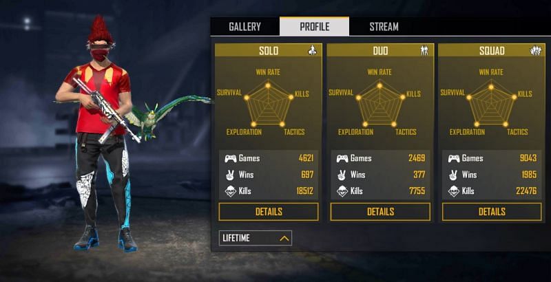 The popular YouTuber has also played 3055 duo matches and has emerged victorious in 1218 of them, making his win rate 39.86%. He has bagged 11397 kills in these matches, with a K/D ratio of 6.20.