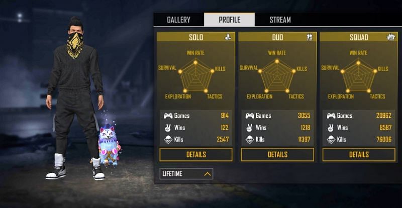 The player has also been featured in 1706 duo games to date and has a win tally of 298 matches, which equates to a win percentage of 17.46. He is just a few frags short of the 5000 kill mark and has managed a K/D ratio of 3.55.