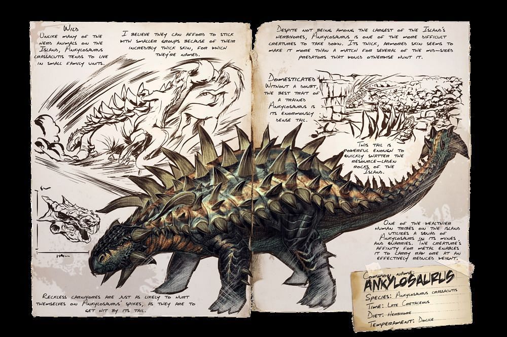 Ankylosaurus are peaceful reptiles who won't attack unless provoked. The dossier, which describes various creatures and objects in the game, lists the advantages of domesticating the creature. It states: