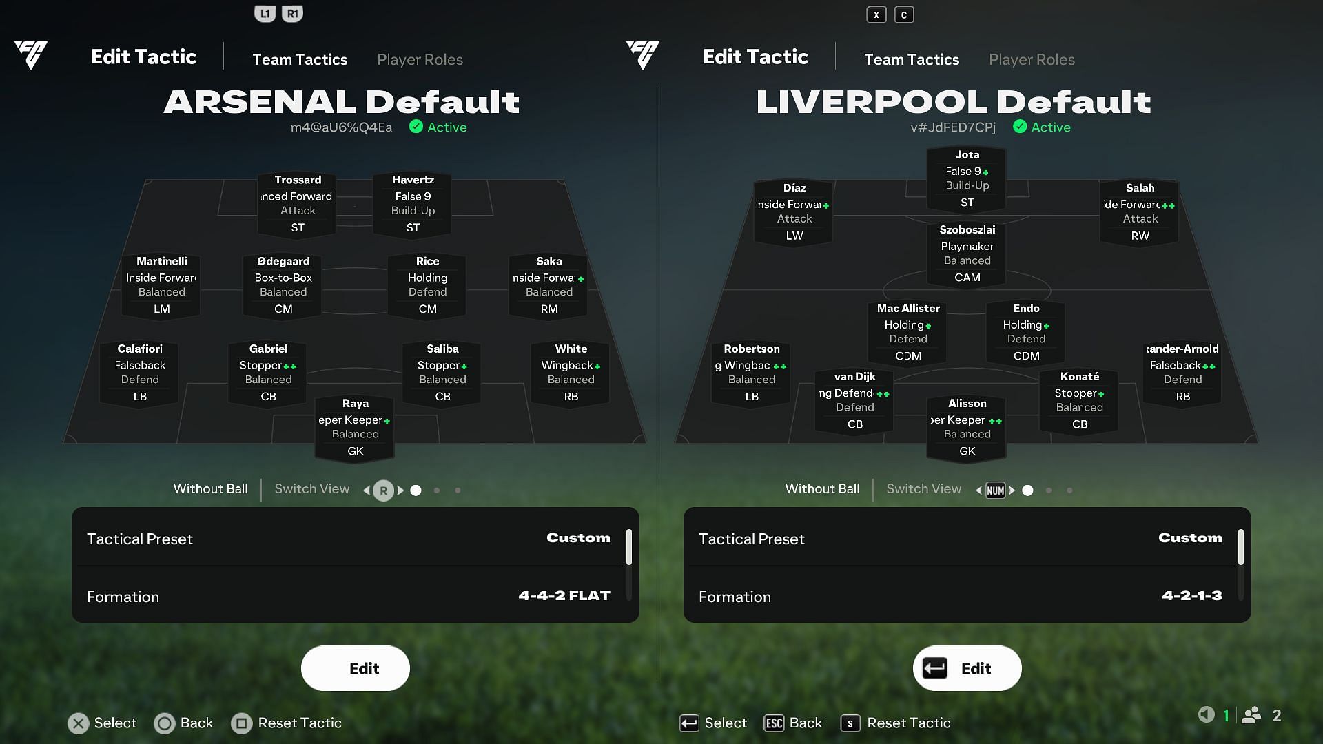 Arsenal vs Liverpool in EA FC 25: Player Roles