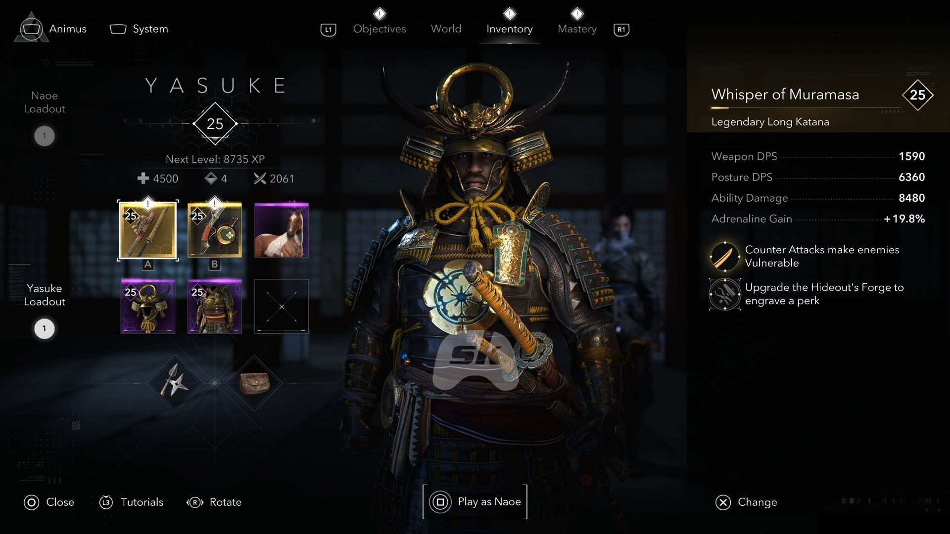 Naoe and Yasuke each have six skill trees, with some focusing on the individual weapons and others on playstyle. You can level up a skill by investing Mastery Points in it, which can be earned by not only leveling up but also completing in-game activities such as Castle.