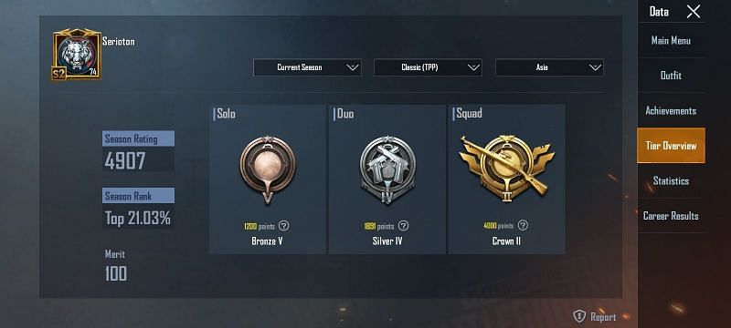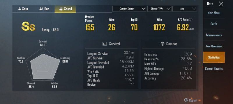 Athena's PUBG Player ID is 694984807 and his current statistics is shown below: