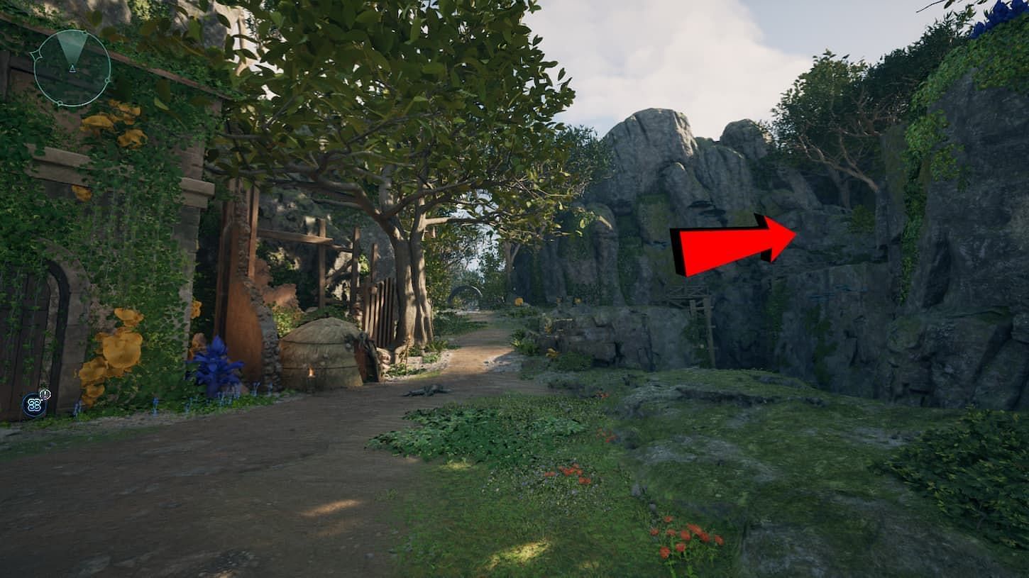 Jump this gap, and follow the road to the left. Instead of taking the bridge you just passed under, head to the passage in the opposite direction (east). This will lead to a clearing, where you'll hear a wizard muttering to himself.