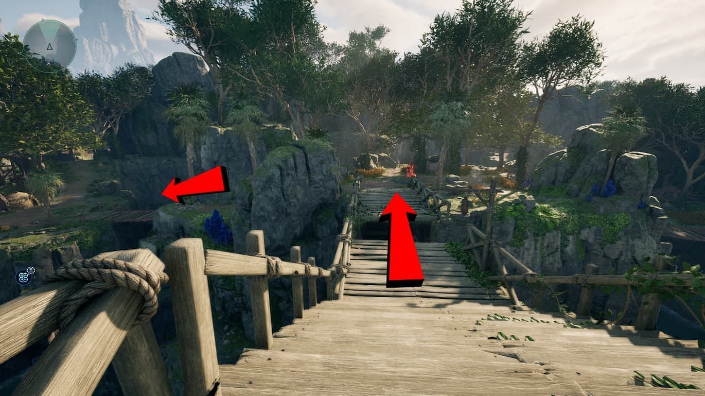 Afterward, look towards the east, and proceed to the walkway along the cliff face to the right where you can make a jump.