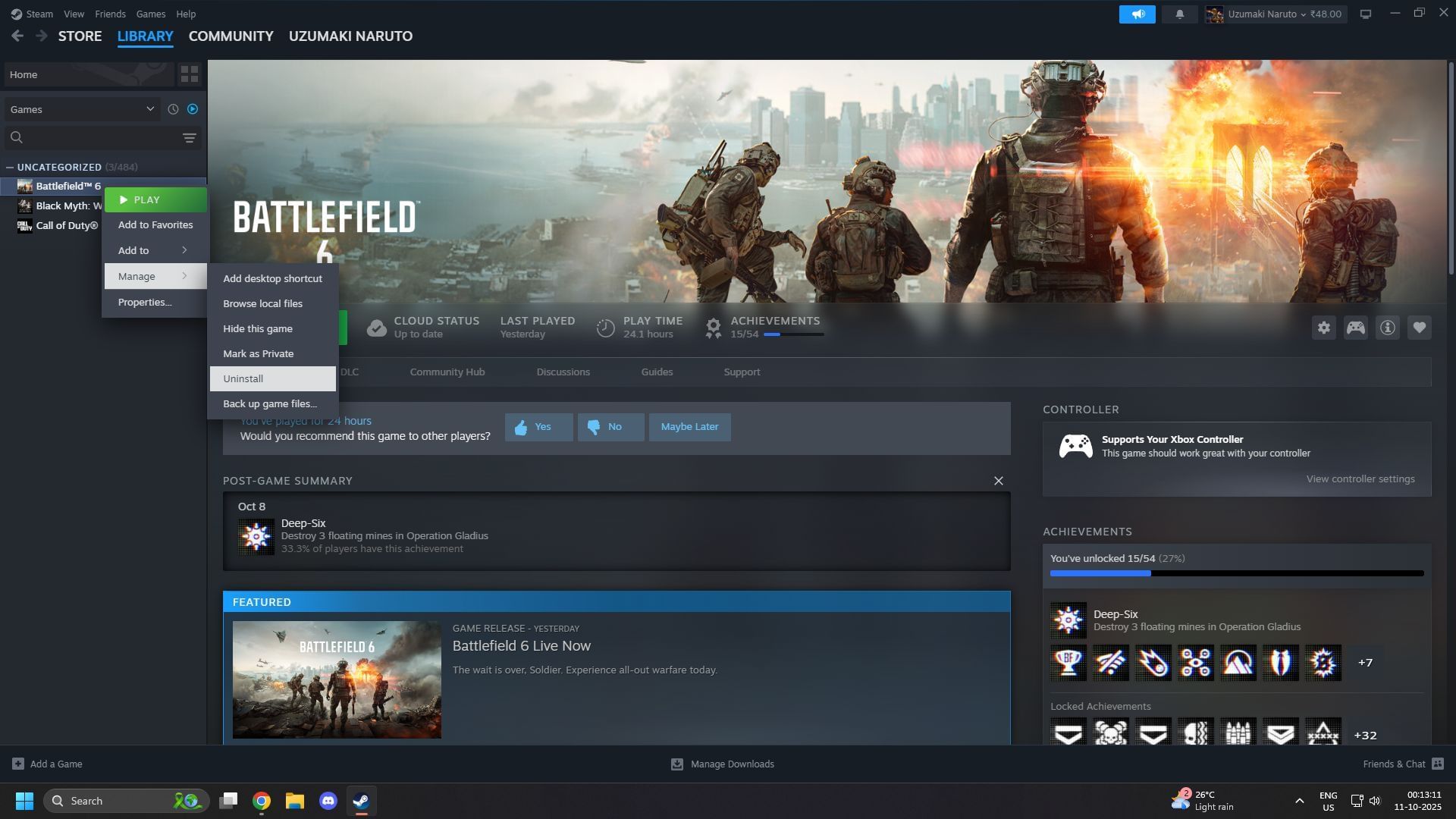 - Right-click on Battlefield 6 and select the property option.