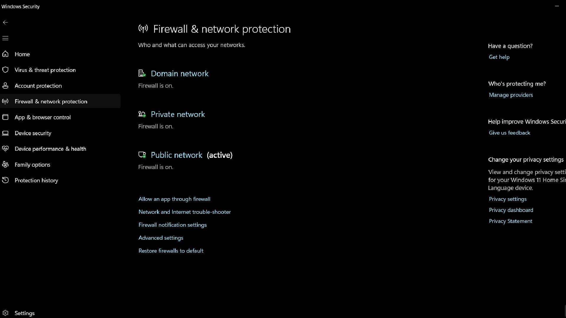 - Step 2: Select the “Firewall & network protection”.