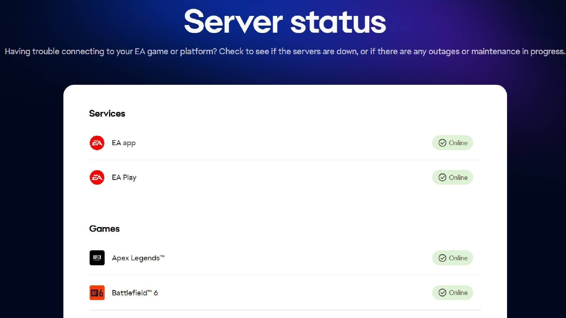 Check the server status of Battlefield 6