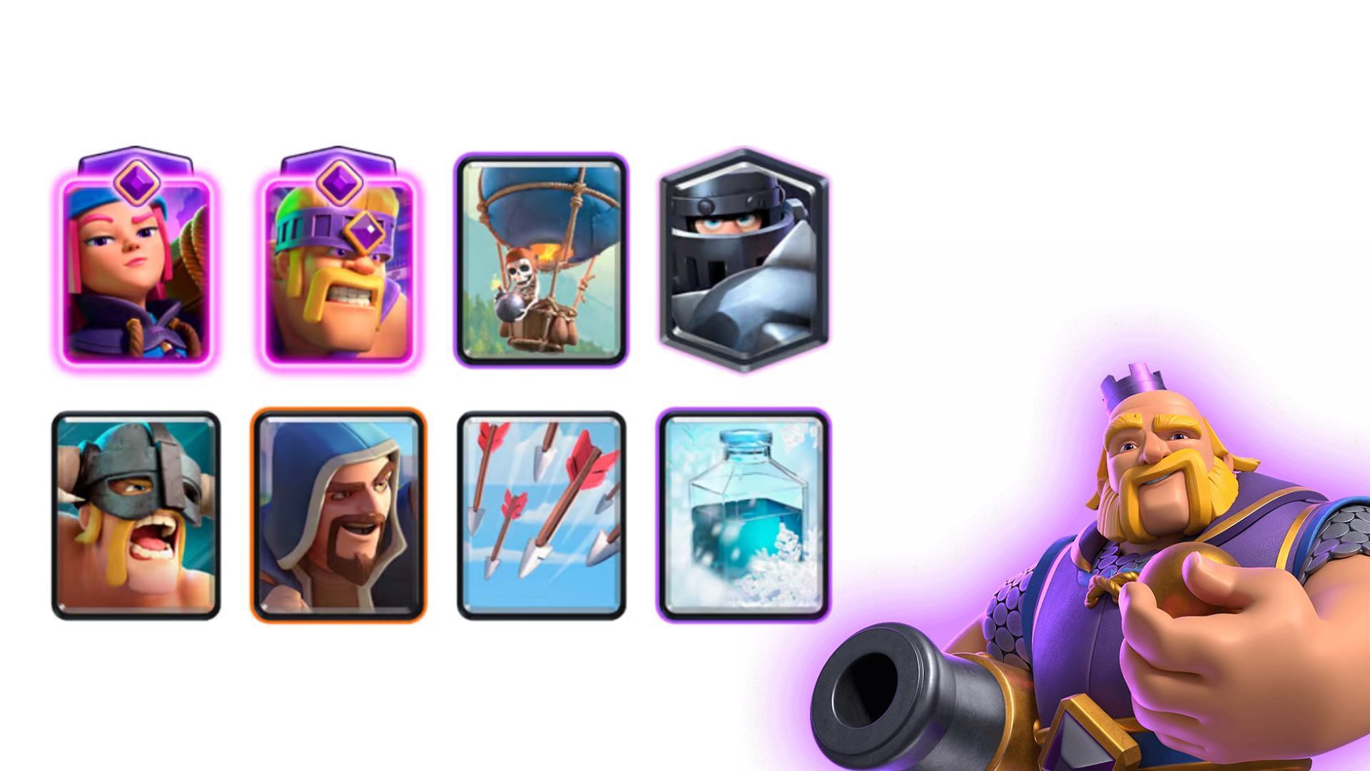 Arrows can be used to protect Balloon from army swarms. Bats, Witch, and Valkyrie Evolution can take down the enemy's tanks and mini-tanks.