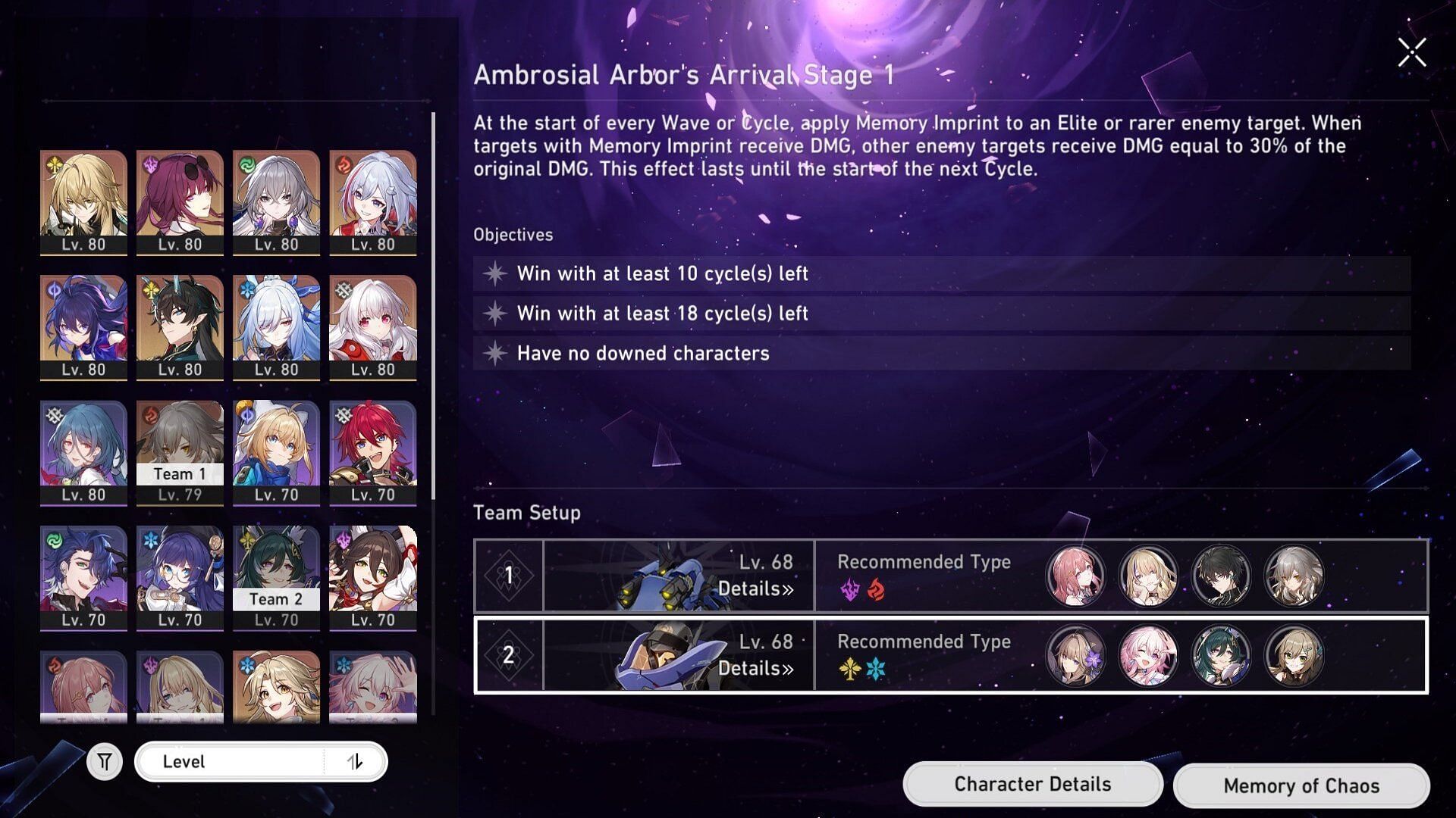 Honkai Star Rail version 1.4 Memory of Chaos Team recommendations