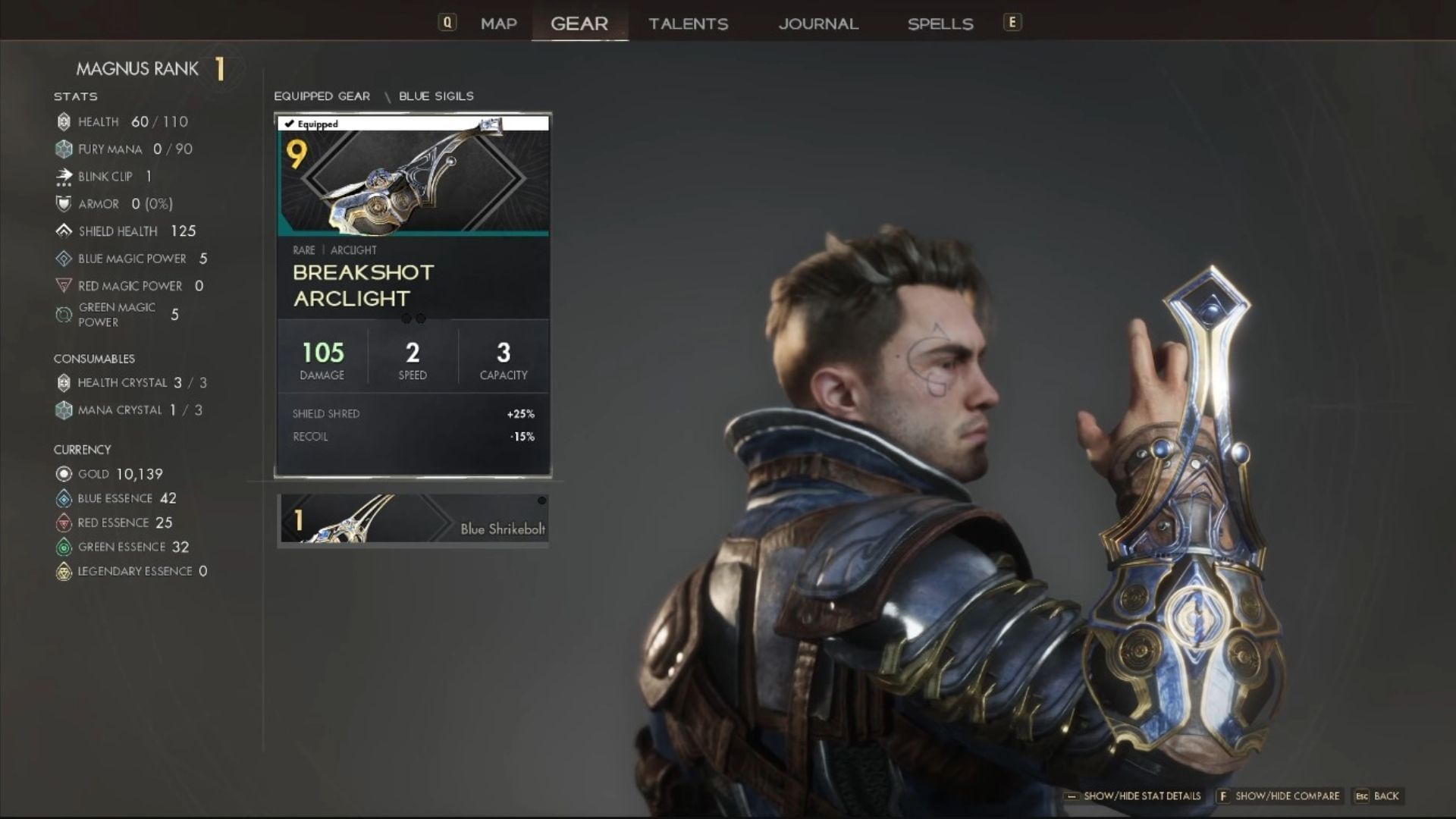 - Magnus Javelin: 177 damage, 1.9 fire rate, 3 capacity, +15% Javelin critical damage, 1 blink charge.