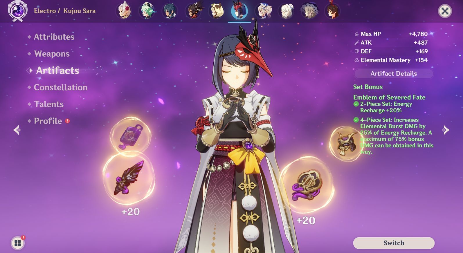 Kujou Sara is a flexible character in Genshin Impact due to her role as an ATK booster. Especially if she is in Constellation 6, Sara will be an excellent addition to any Electro team.