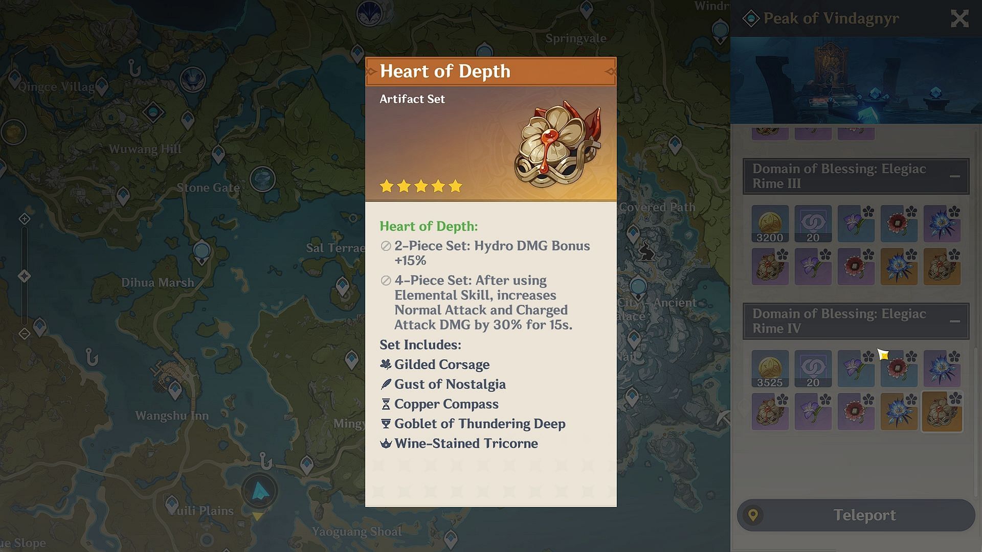 Heart of Depth is another great artifact for Mualani. It provides a 15% Hydro DMG bonus and buffs the Normal and Charged Attack DMG by 30%. You can go with this option if you don't have the first two sets.