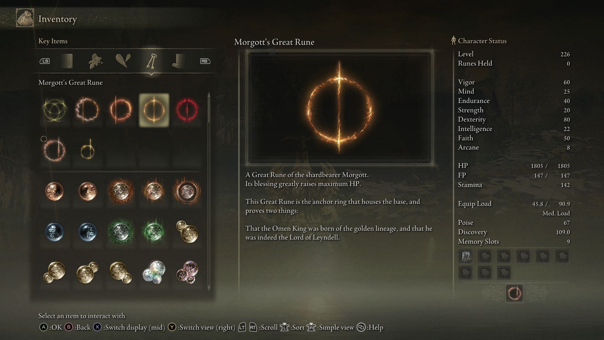 In this case, Morgott's Great Rune will apply the 25% boost to your buffed HP instead of your base HP of 900. If you combine it with the right items, you can add a ton of health to your Tarnished.