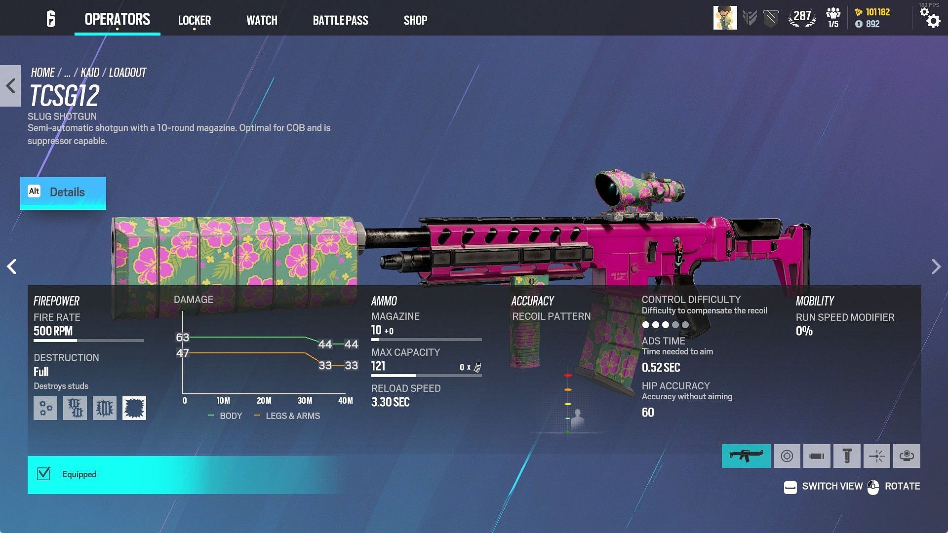 The TCSG12 comes with a fire rate of 500 rpm and a base damage of 63.