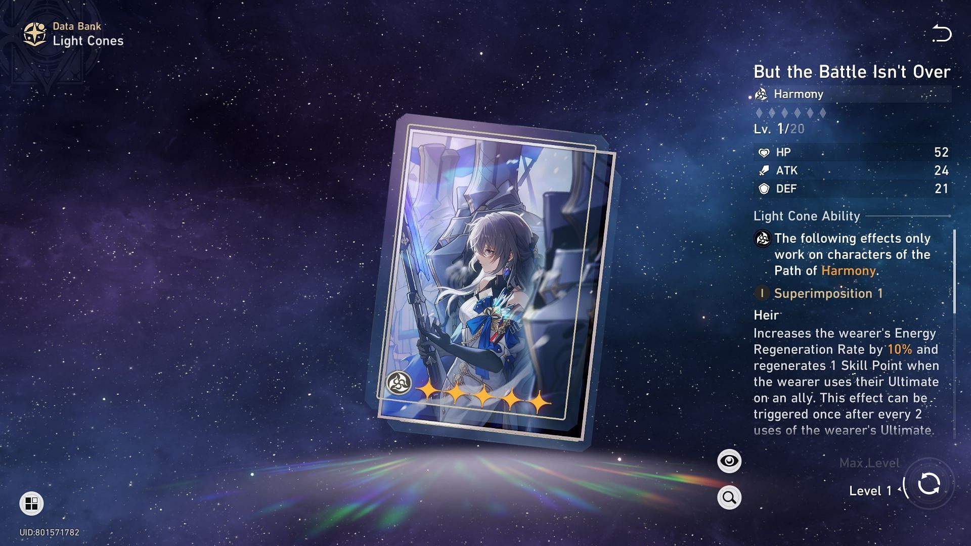 While “But the Battle Isn't Over” isn’t as effective for Tribbie as her signature Light Cone, she can still benefit from the passive. This LC increases the wearer’s Energy Regeneration Rate by 10% and recharges a Skill Point after the wearer uses their Ultimate. Tribbie would want to spam the ability, effectively triggering the effect if it's available.