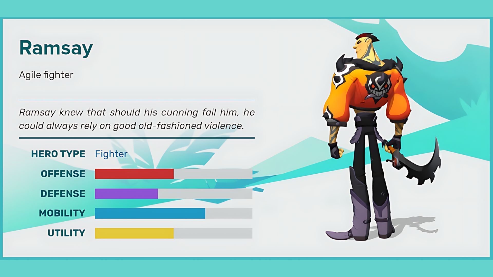 Ramsay offers a blend of aggression and mobility, making him a formidable and nimble melee DPS. His basic attacks cause bleeding, and his Rush ability lets him dodge attacks and reposition swiftly. These attacks are good offense and defense, respectively. His Flurry attack slows him down but deals significant damage in prolonged fights.