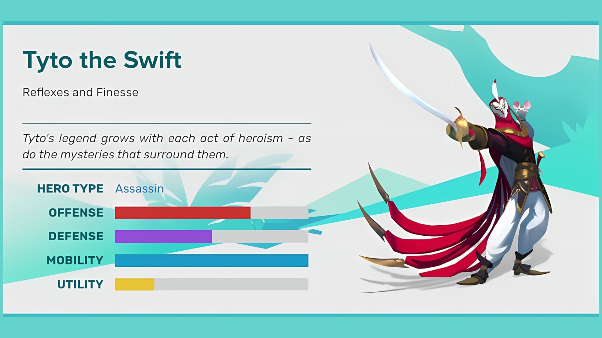 Tyto’s design revolves around mobility and rapid hit-and-run attacks, making him perfect for guerrilla warfare tactics. His Talon move is fast and relentless, while his Swoop ability allows him to leap into combat or retreat with ease. Blade Dance boosts his movement speed dramatically, enabling him to dodge and weave through the battlefield.