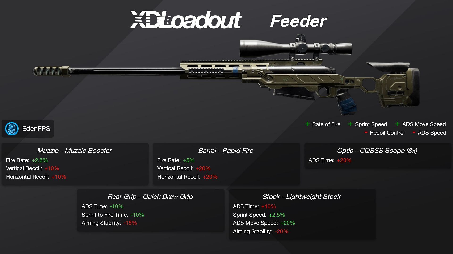 The above loadout will improve Short-range fire rate, Long-range fire rate, Sprint to fire time, Recoil control, ADS time, and Sprint speed.