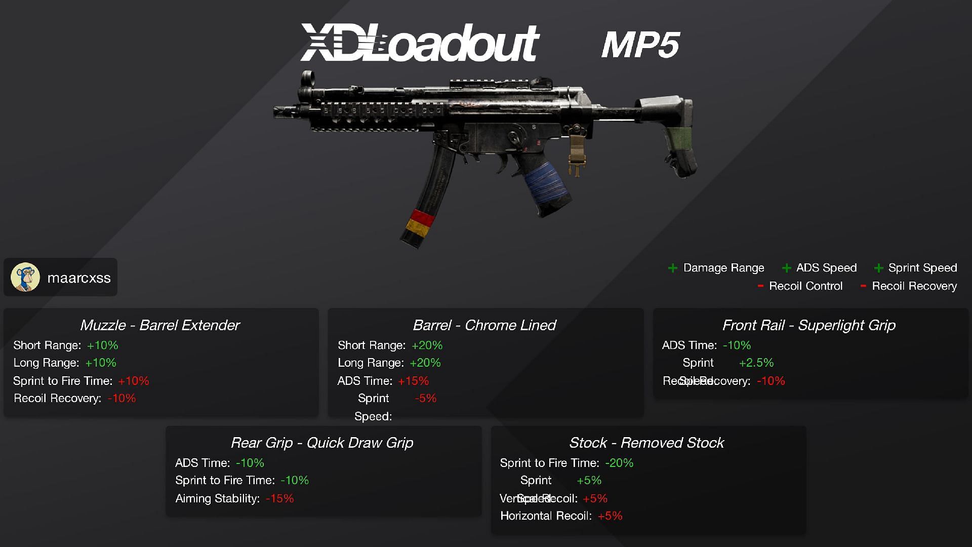 The above loadout will significantly improve the Fire rate, vertical recoil, Horizontal Recoil, ADS time, Sprint to Fire time, and Sprint Speed.