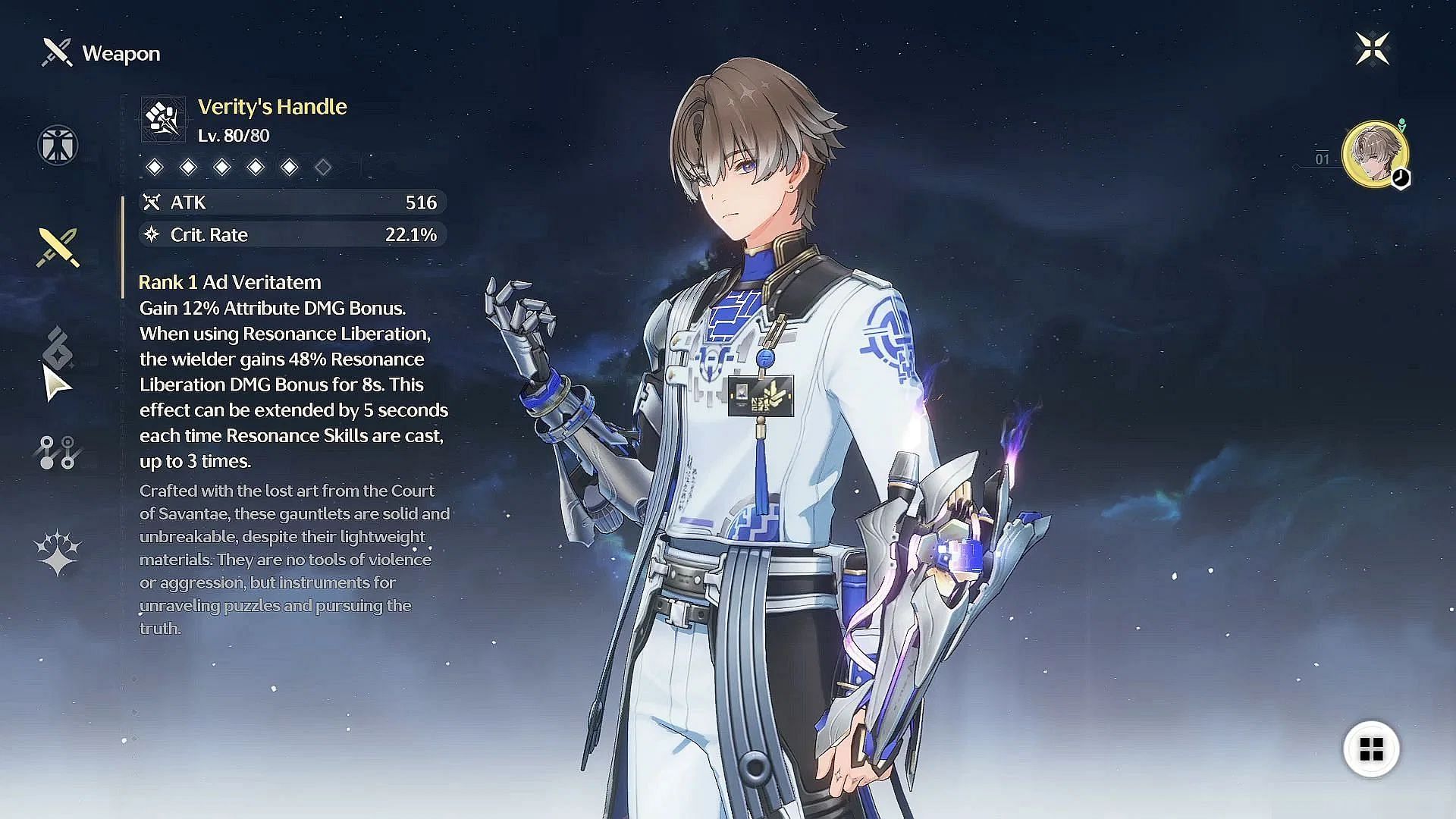 Verity's Handle is also a good 5-star alternative for Roccia. It has a Crit Rate second stat bonus and the weapon's passive gives a decent amount of all Attribute DMG bonus.