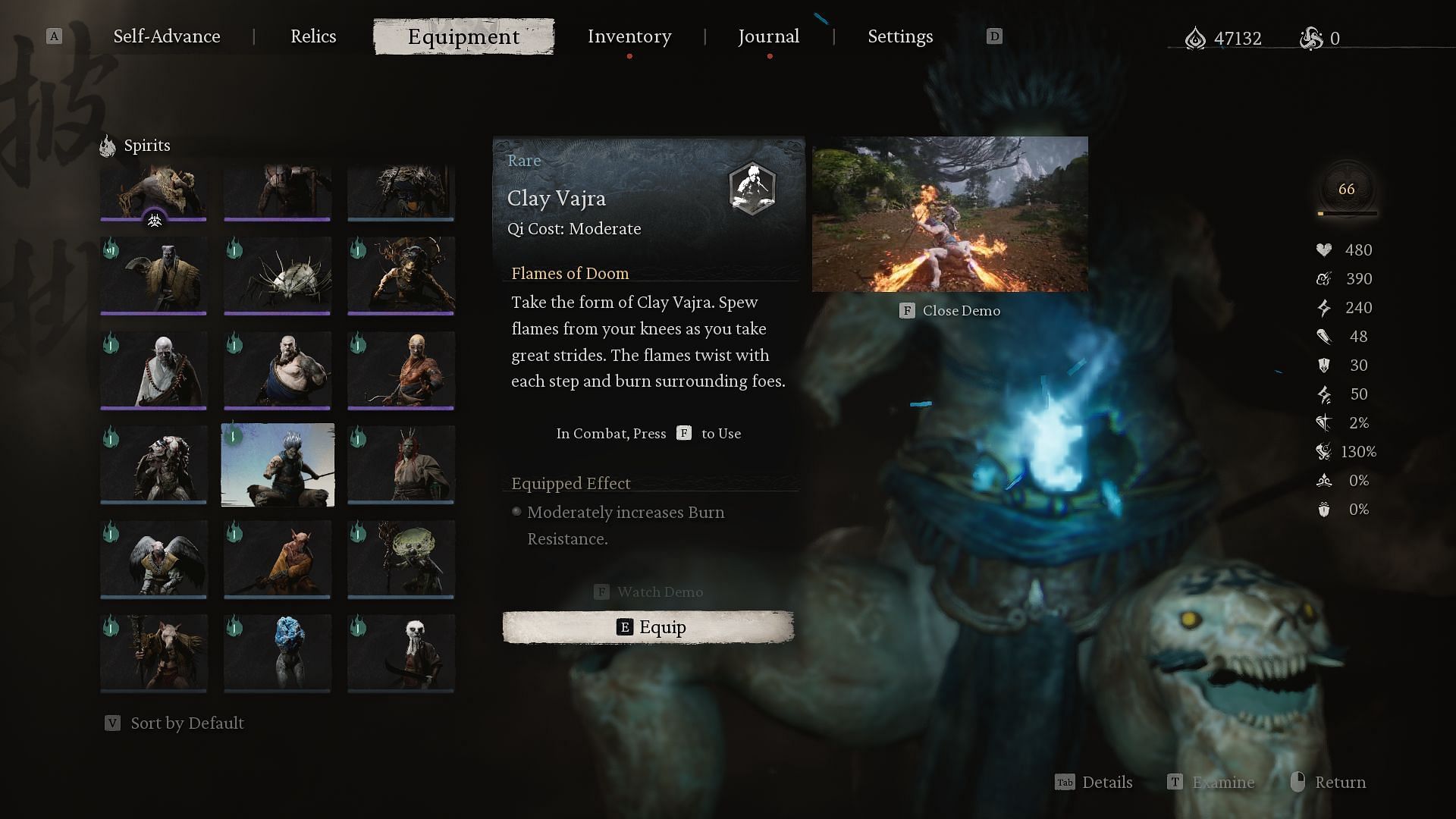 Last but not least, your burn resistance is also moderately increased if you have the Clay Vajra Spirit equipped in Black Myth Wukong.