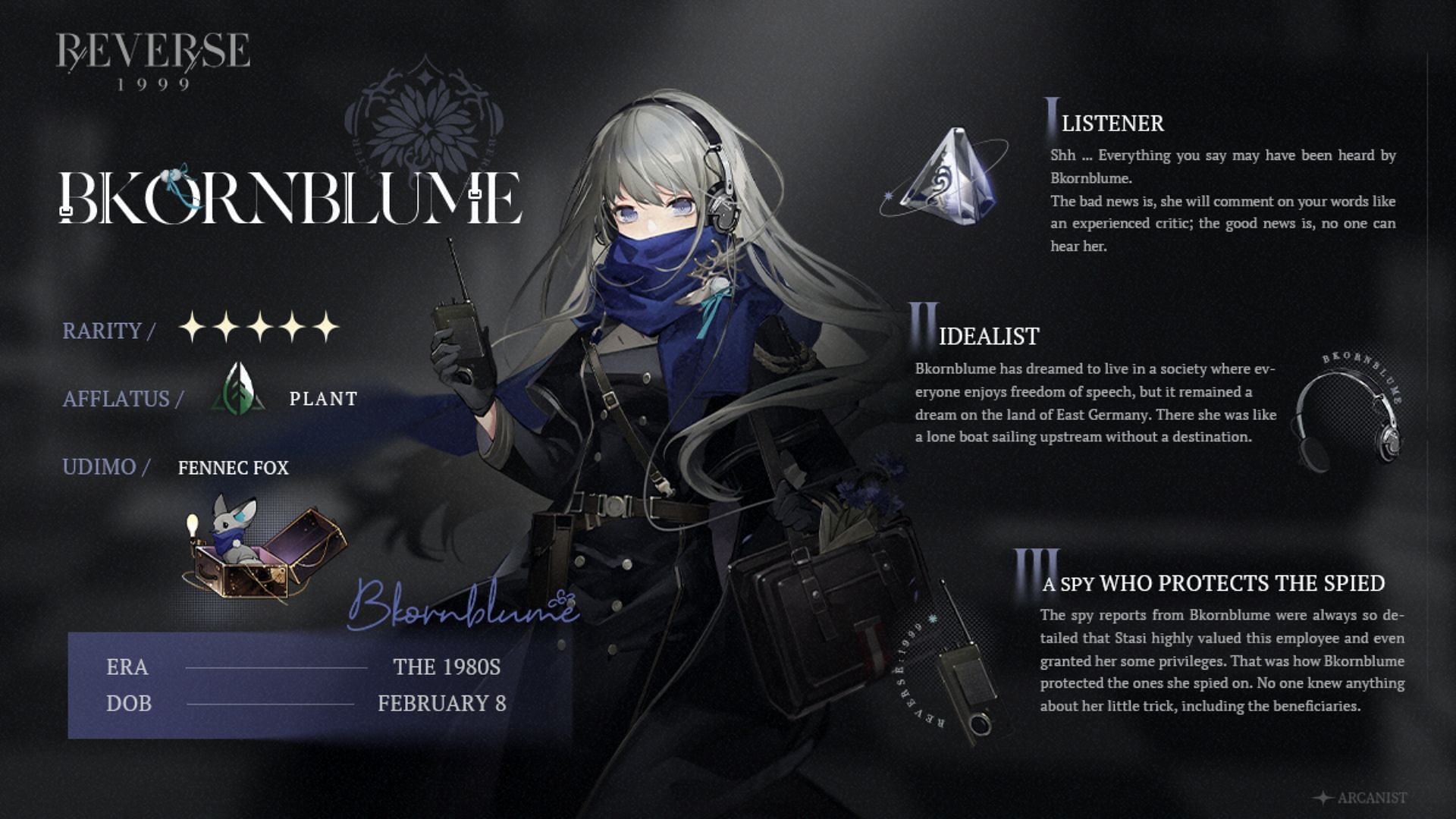Equip her with Luxurious Leisure, Brave New World, or Hopscotch Reverse 1999 Psychubes to strengthen her kit further. Bkornblume is one of the best Support characters in Reverse 1999 you can have for Reality damage team composition.