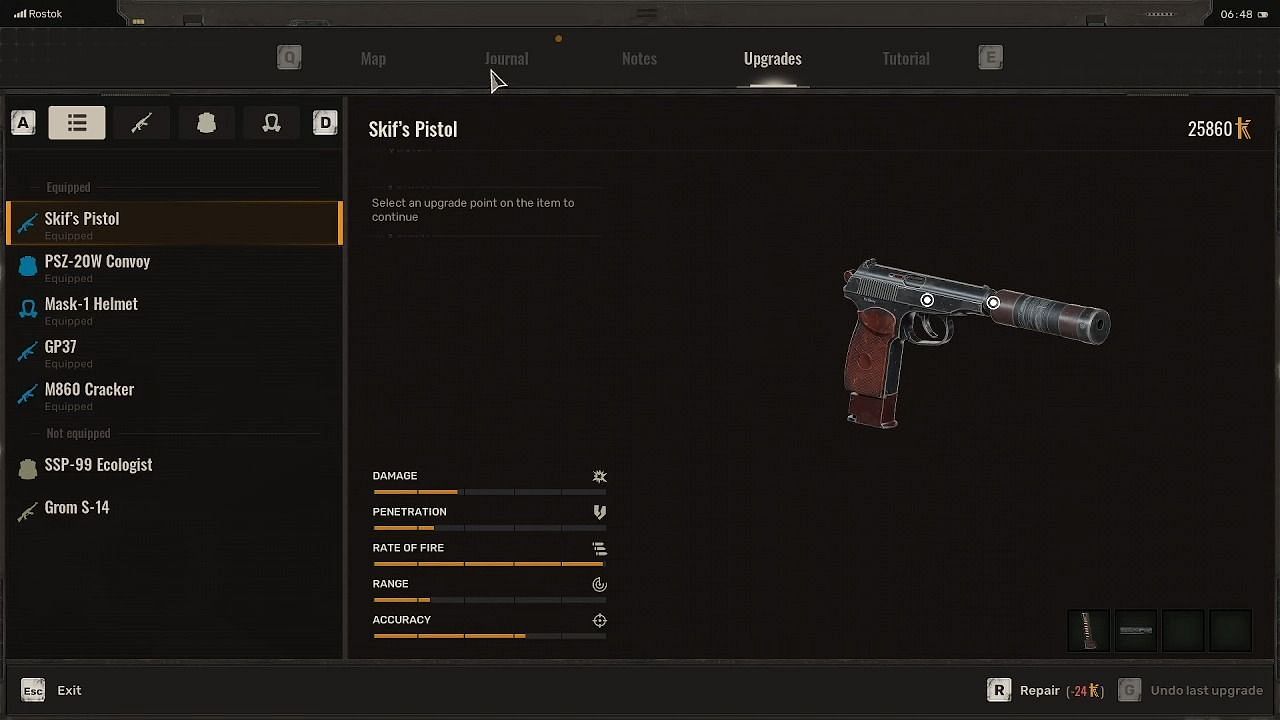 Despite being positioned near the Cooling Towers, which yield high-tier loot, Sgt. Khmaruk cannot fully upgrade advanced equipment such as Exoskeletons or advanced suits.