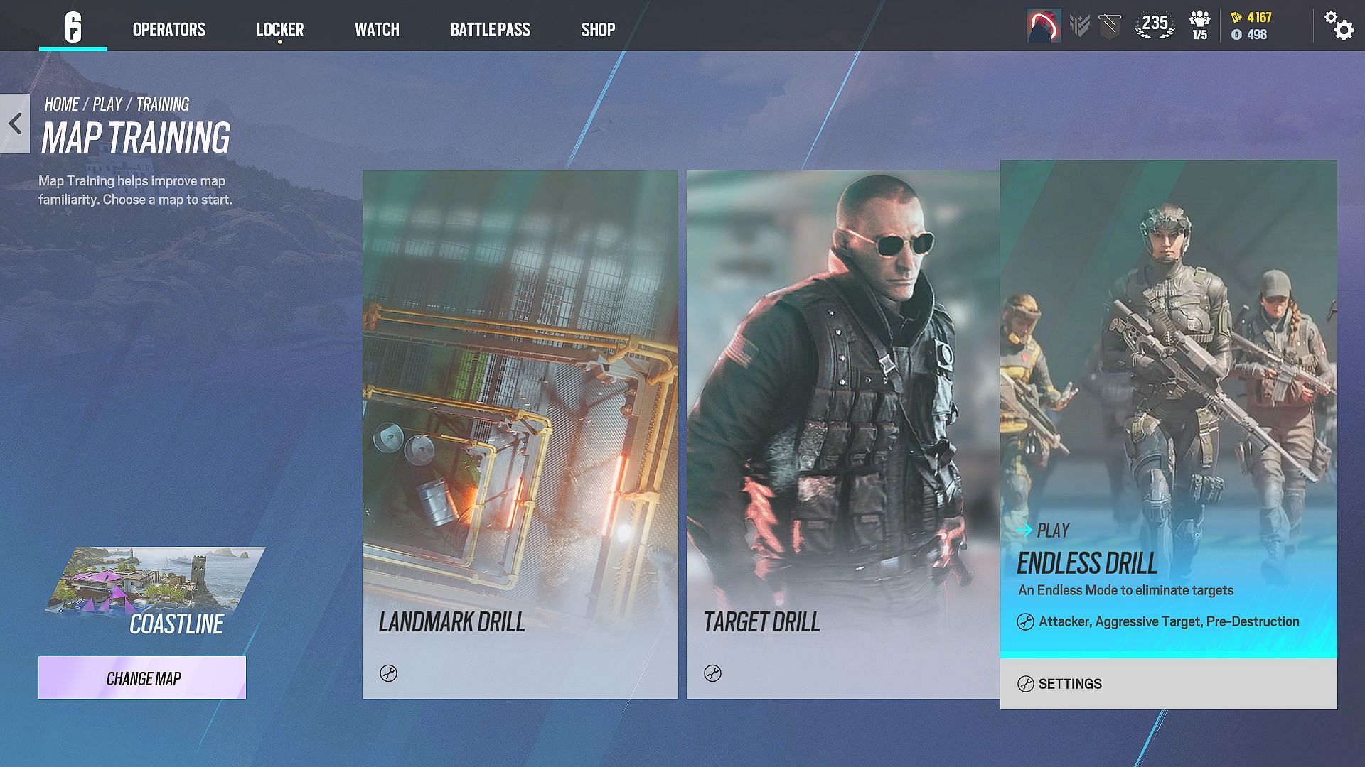 Endless training mode is a new addition to the Map training mode that was introduced as a replacement for T-Hunt (Terrorist Hunt). Map training previously had players exploring maps and going to rooms specified by the game in order to eliminate bots that replaced the terrorists in the older T-Hunt.