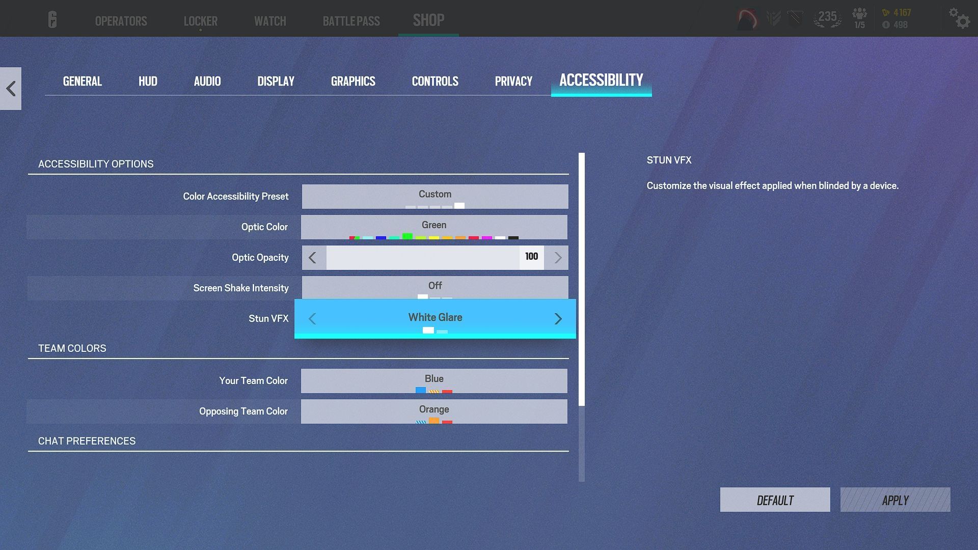 Stun VFX will be available to change in either the Accessibility tab or the General tab in the Options menu. This will save players, especially ones playing in dark rooms or with bright monitors, and protect their eyes from getting bombarded with sudden full-screen white glares due to in-game attacker utility.